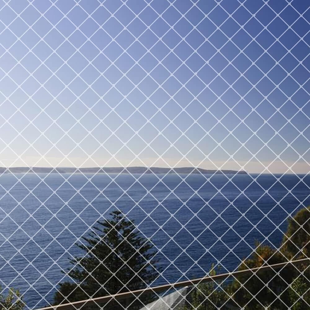 【透明ネット】透明色で目立たなくて建物自身の色味に合わせて、外側の景観も損ないません。