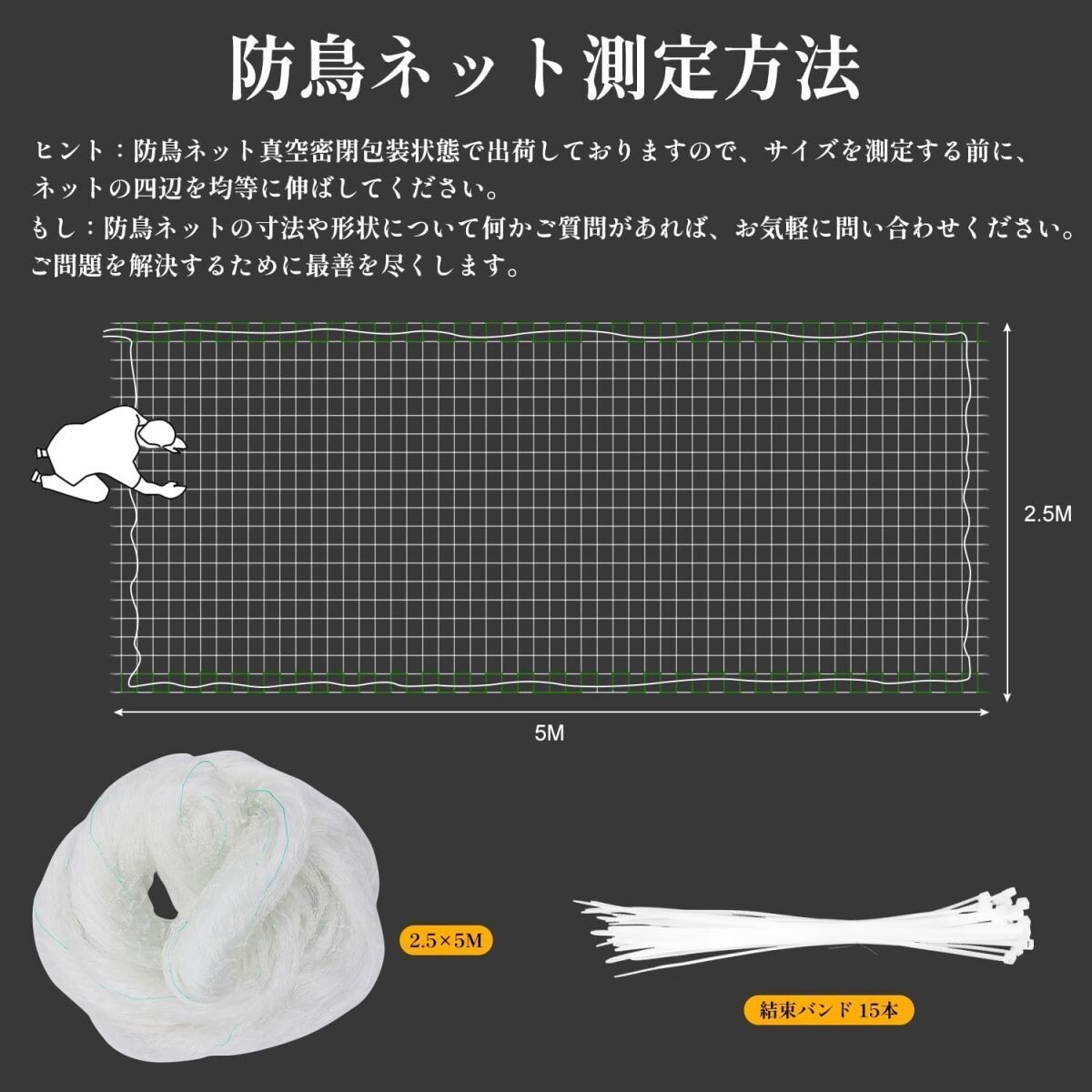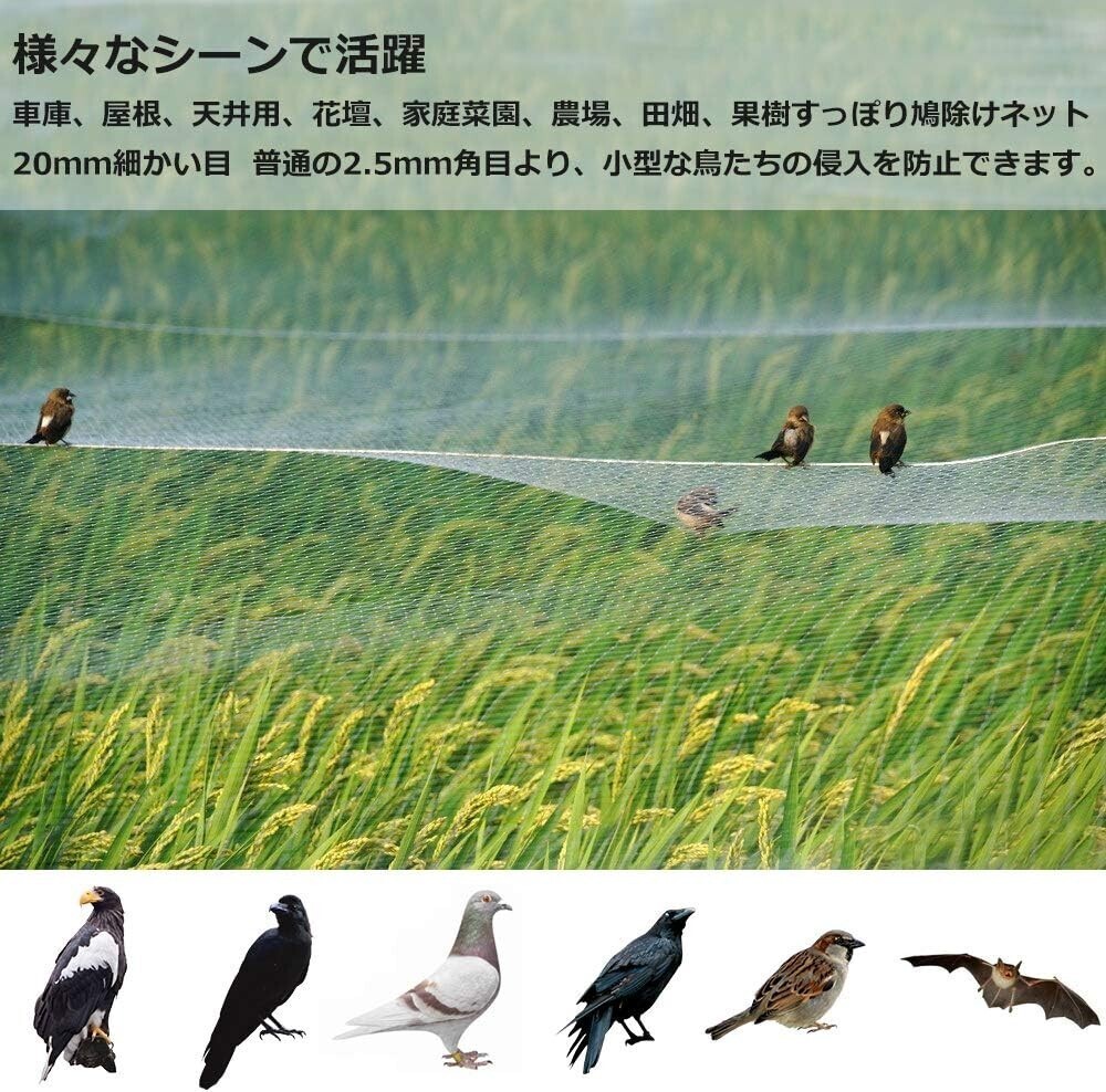 ベランダ 防鳥ネット 2.5×5m 鳥よけ カラス 鳩 鳥害対策 防鳥防獣網 鳥除け 透明色 Limthe(結束バンド 15本付き) 商品詳細 【20mm細かい目】最新版防鳥ネットは普通の2.5mm角目鳩よけネットより、小型な鳥たちの侵入を防止できます。