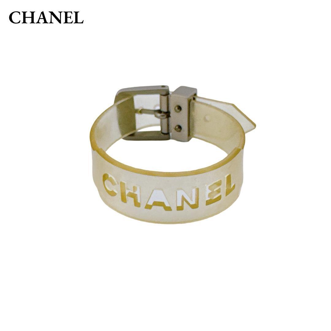 シャネル 99 S ラバー ブレスレット ロゴ クリア ヴィンテイージ レディース メンズ シルバー金具