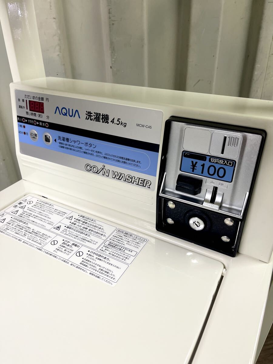 ★☆業務用 AQUA/アクア コインランドリー 洗濯機: MCW-C45/乾燥機:MCD-CK45専用架台付 金額設定可能