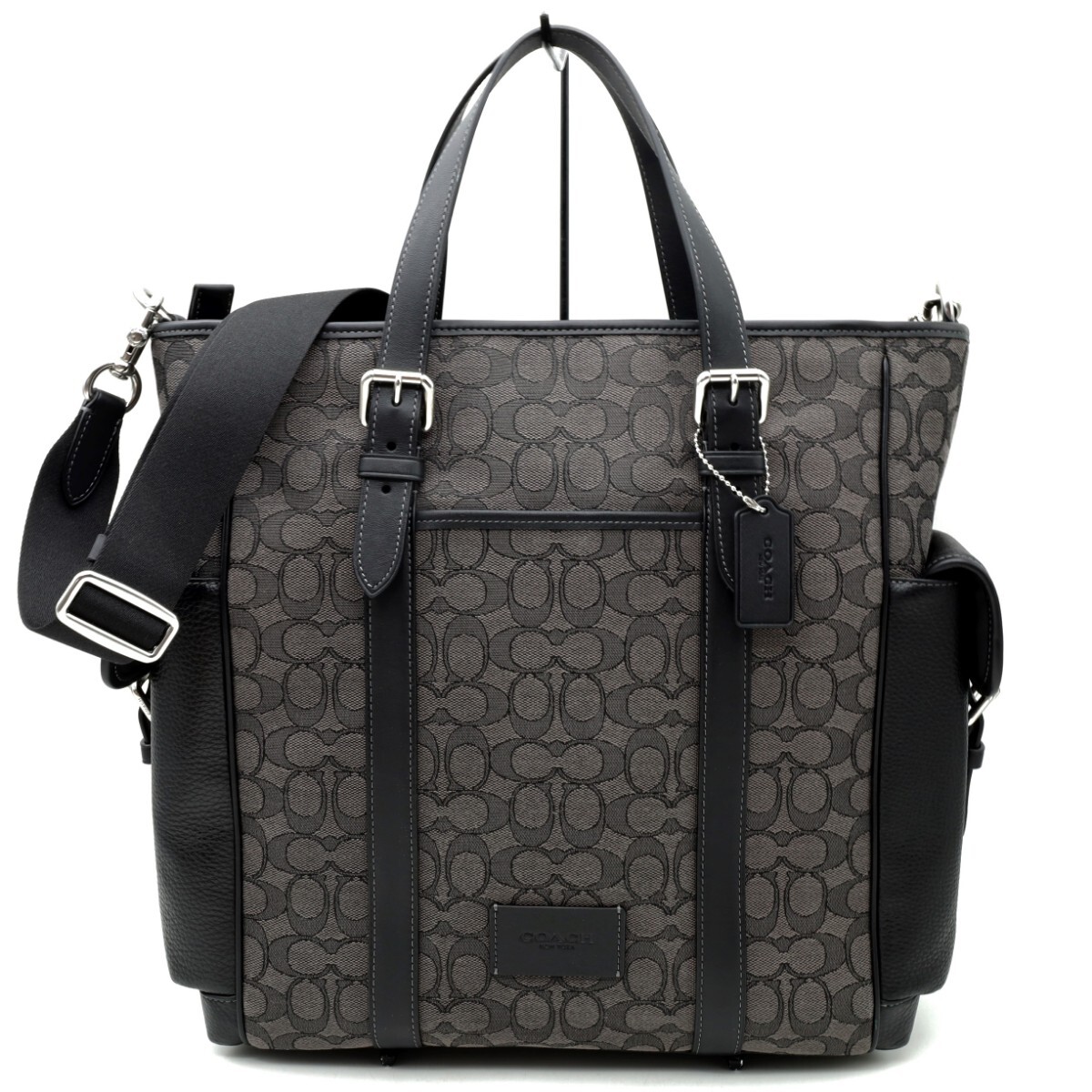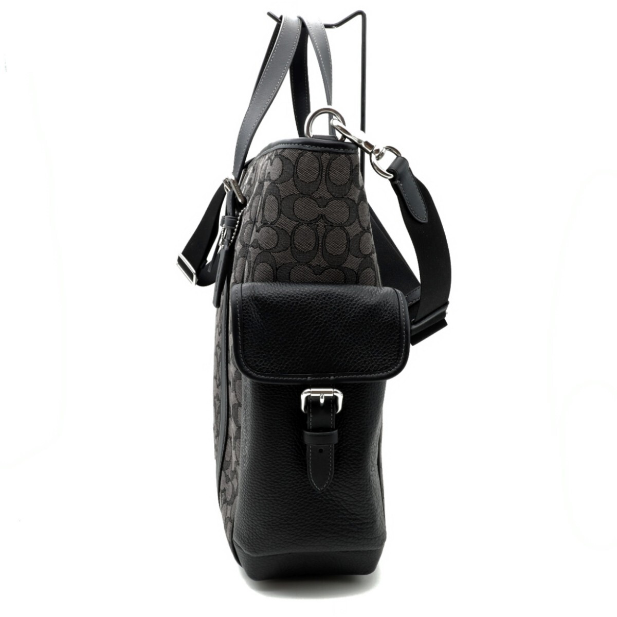 ブランドを象徴するシグネチャー柄が織り込まれたジャカード素材と、上質なレザーの組み合わせが洗練された高級感を演出します。