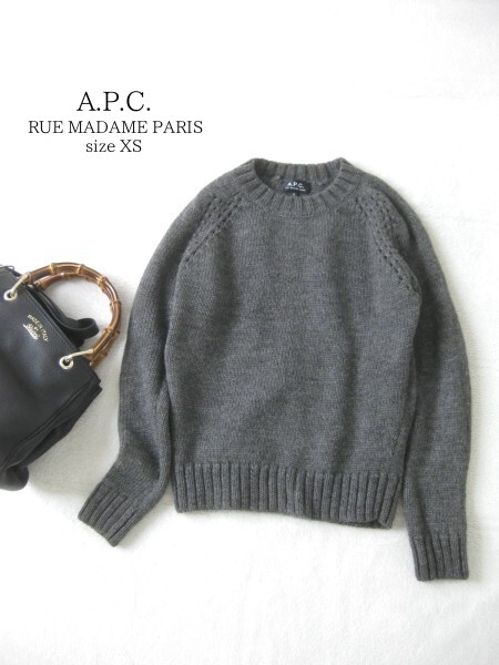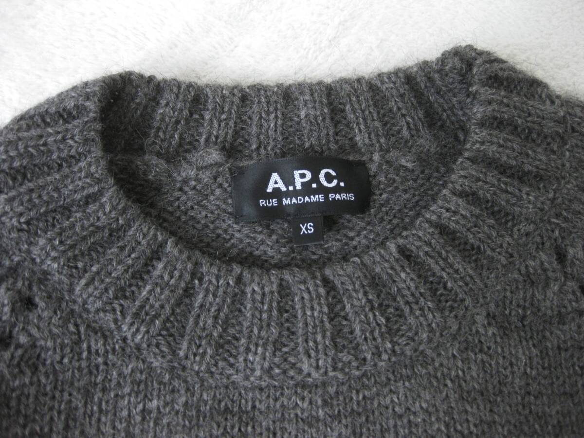 ☆A.P.C.アーペーセー☆ニット☆長袖☆グレー☆XS(7号相当)☆ウール混☆クルーネック☆イタリア製生地☆