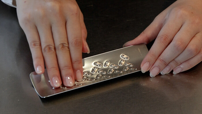 トミタ式おろし金は刃を刃を使わない特有のあじろ模様突起で、