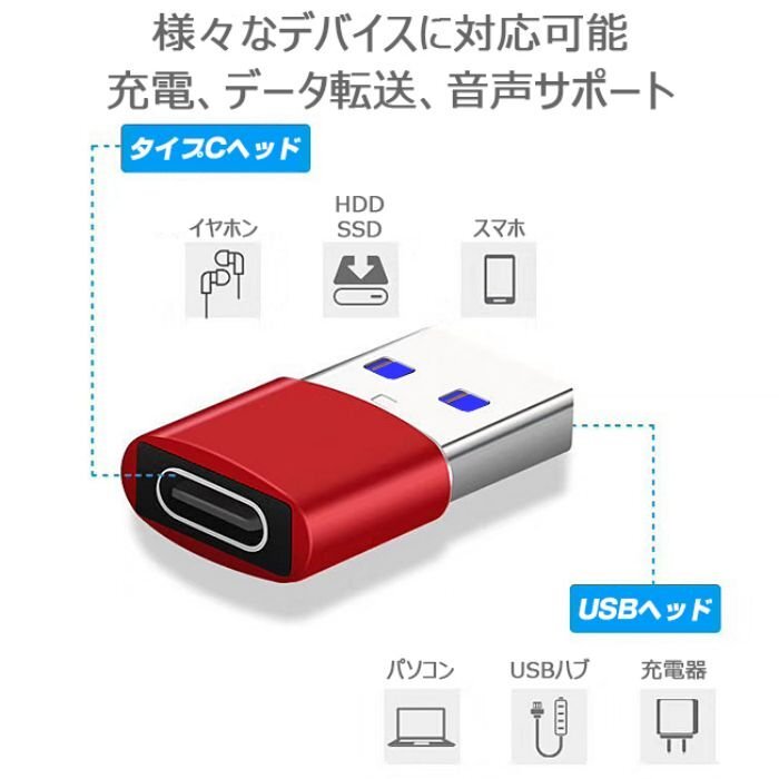 USB3.0 OTG 変換アダプター Type-C to Type-A usb 変換 ケーブル イヤホン 高速 データ転送 充電 USB充電 便利 超小型 超軽量-レッド