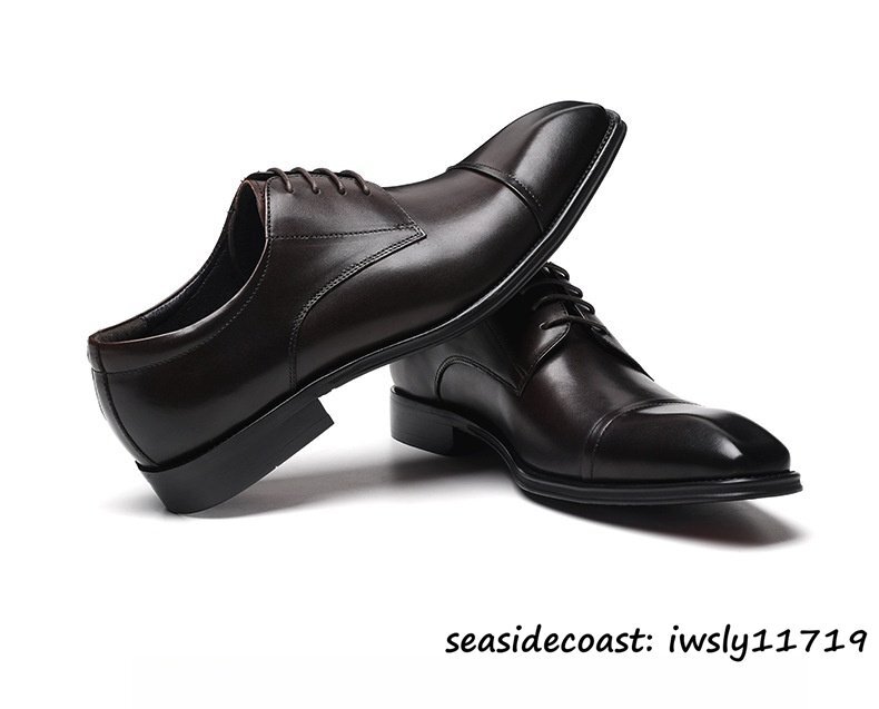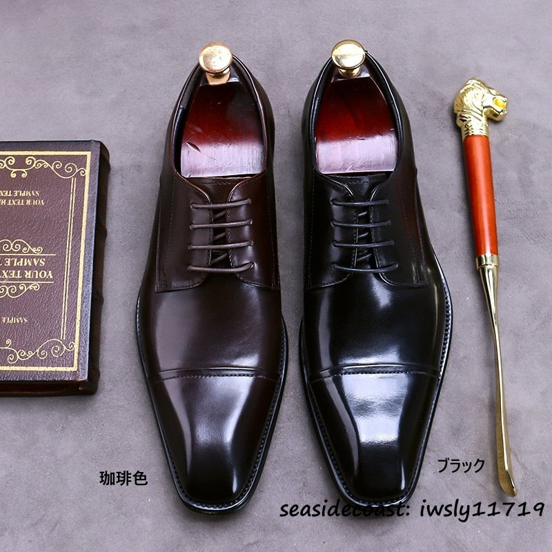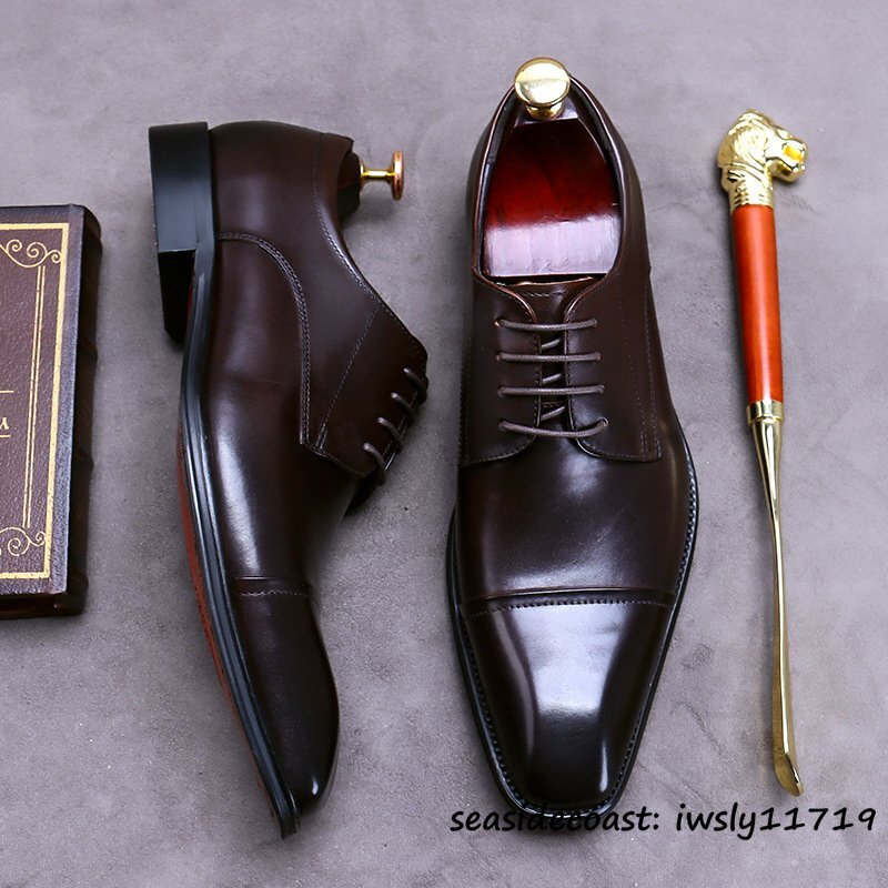 定価9万超◆レザーシューズ メンズ 本革 紳士靴 ビジネスシューズ 高級牛革 職人手作り 冠婚葬祭 革靴 フォーマル 新品 珈琲色 25.5cm