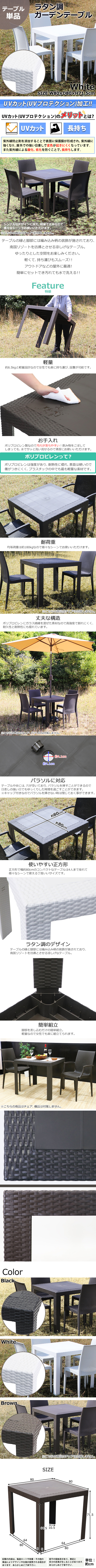 | 商品名 | 送料無料 ラタン調 ラタンテーブル ガーデンテーブル 正方形 幅約80cm 耐荷重約180kg UVカット ポリプロピレン製 PP 軽量で持ち運び簡単 ラタン調ガーデンテーブル バリ風 庭 ガーデンファニチャー アウトドアテーブル パラソル使用可 屋外用 テラス バルコニー rtntablet |