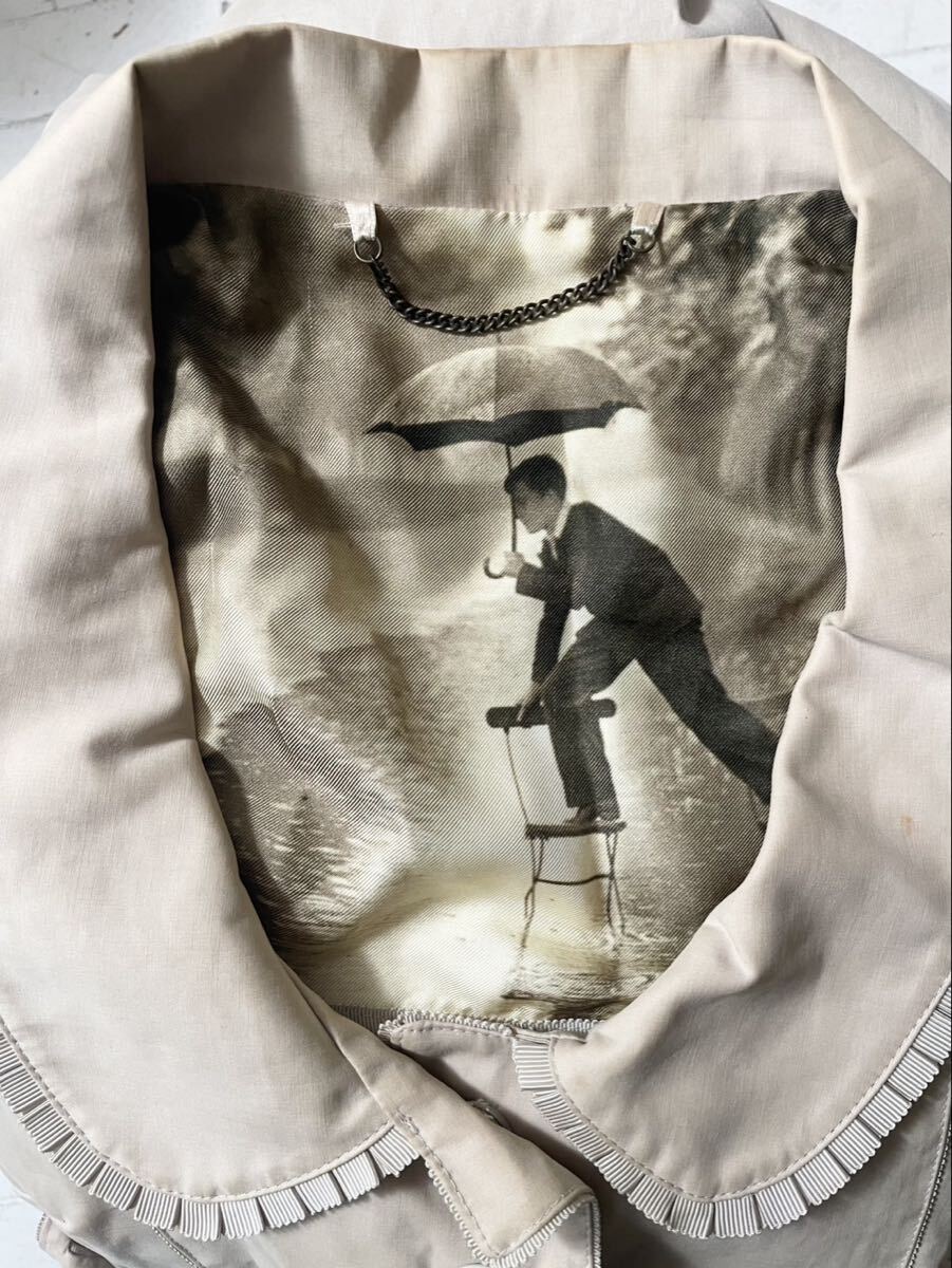 アニヤ・ハインドマーチのコートです。 ベージュの可愛らしいデザインで素敵な一着です。これからの秋〜冬にかけていかがでしょうか。 背裏は傘を差した男の子の絵で凝った造りとなっています。 襟元左側中央に一点薄らとシミがございます(画像10枚目参照)。 保管に伴うシワ等あります。 【サイズ 】 表記 : S 着丈:約96cm 肩巾:約37cm 身巾:約43cm 袖丈:約52cm 素人採寸になります。 【素材】 表地 本体 綿 70% ナイロン 30% ワッペン 牛革 裏地 絹 その他デザインや状態等、画像を参考にしてください。 どうぞよろしくお願いいたします。 |