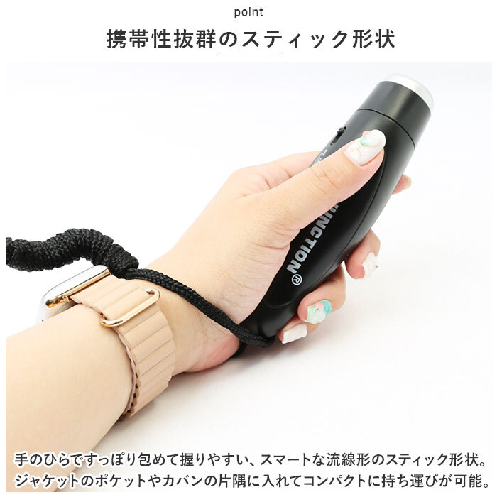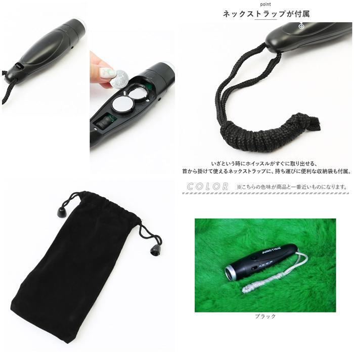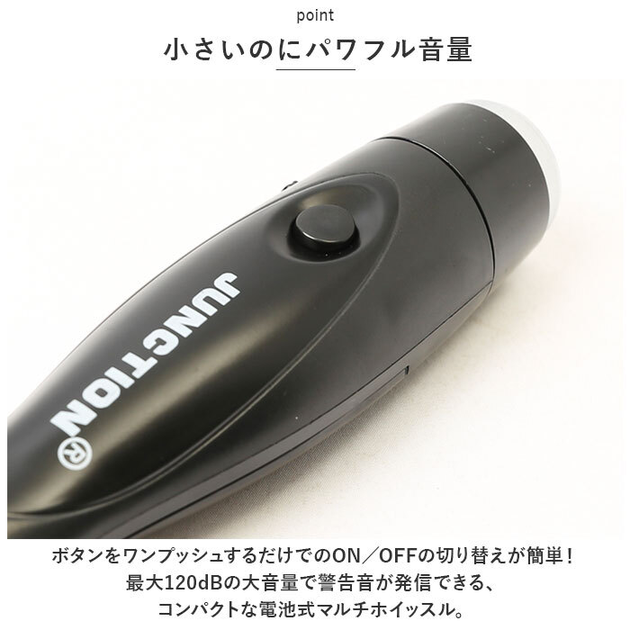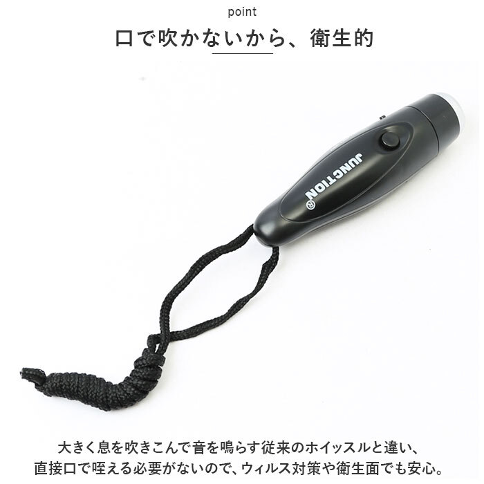 | 商品説明 | ・・防犯対策からスポーツまで、幅広いシーンで活躍!コンパクトでマルチに使える「電子ホイッスル」が新登場。 ・【小さいのにパワフル音量】 ・ボタンをワンプッシュするだけでのON/OFFの切り替えが簡単!最大120dBの大音量で警告音が発信できる、コンパクトな電池式マルチホイッスル。 ・【3種類のサウンドを使い分け】 ・警告音発生ボタン左側の切り替えスイッチで、ご使用のシーンに応じて3種類のサウンドパターンから選択することが可能。 ・【口で吹かないから、衛生的】 ・大きく息を吹きこんで音を鳴らす従来のホイッスルと違い、直接口で咥える必要がないので、ウィルス対策や衛生面でも安心。 ・【携帯性抜群のスティック形状】 ・手のひらですっぽり包めて握りやすい、スマートな流線形のスティック形状。ジャケットのポケットやカバンの片隅に入れてコンパクトに持ち運びが可能。 ・【電池交換は誰でも簡単!】 ・CR2032ボタン型電池×4個使用。ホイッスル背面のカバーを取り外せば、電池交換がスムーズ。(※お試し用ボタン電池と、電池交換時に便利なプッシュピンが付属しています。) ・【様々なシーンで大活躍】 ・賑やかな場所でも警告音が響き渡るので、運動会やスポーツ大会での使用はもちろん、登山やアウトドアで緊急時の注意喚起用にも最適。 ・【学校の先生や、スポーツのプロに】 ・学校の先生やスポーツ教室のコーチ、スポーツ競技で審判やラインズマンを務められるプロの方にもオススメ。 ・【ネックストラップが付属】 ・いざという時にホイッスルがすぐに取り出せる、首から掛けて使えるネックストラップに、持ち運びに便利な収納袋も付属。 |