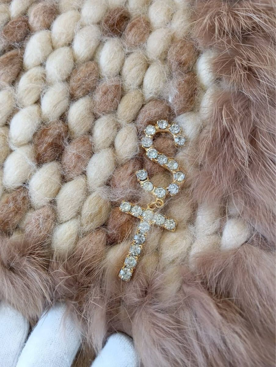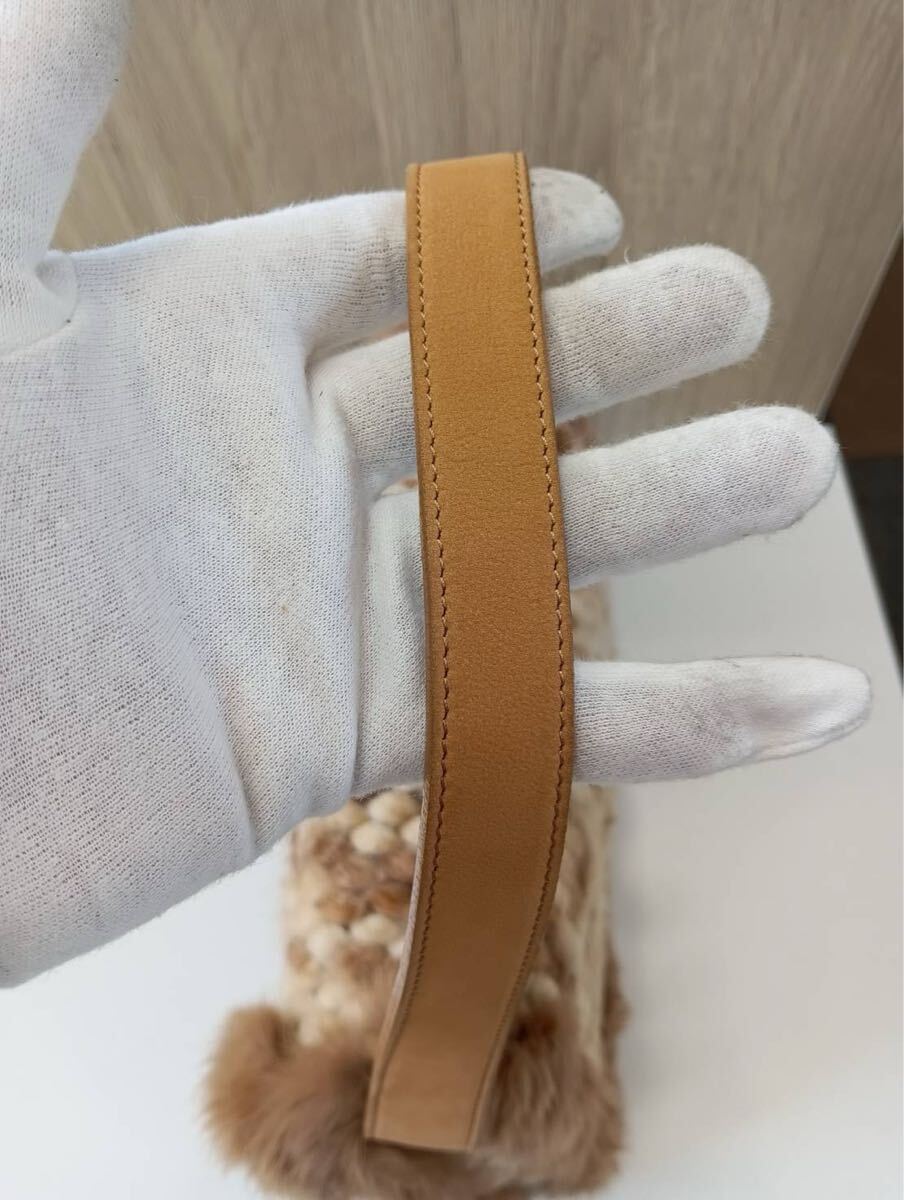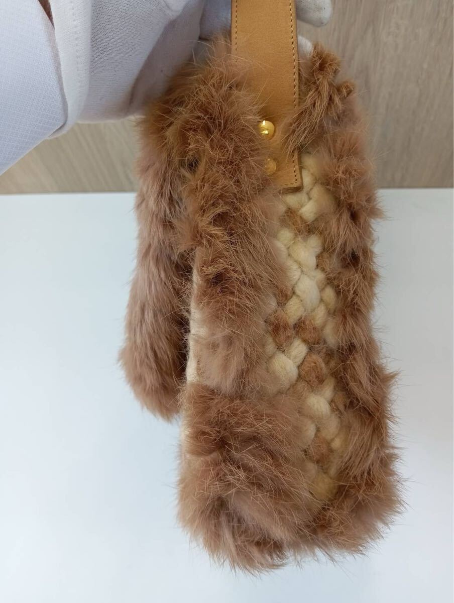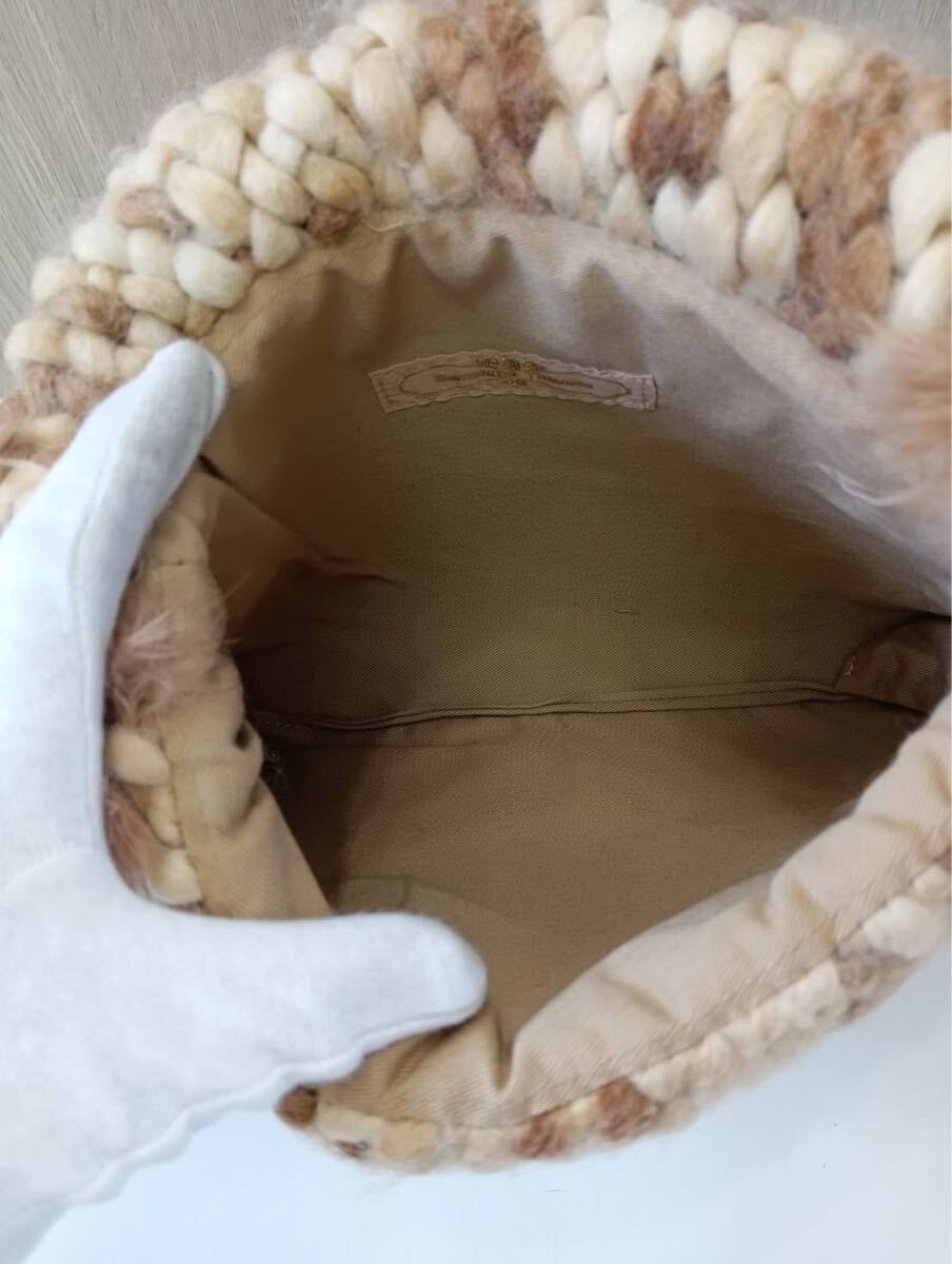 Samantha Thavasaサマンサタバサ ラインストーン付き ショルダーバッグ ラビットファー 茶ブラウン 肩掛け バッグかばん 保存袋付き 現状品