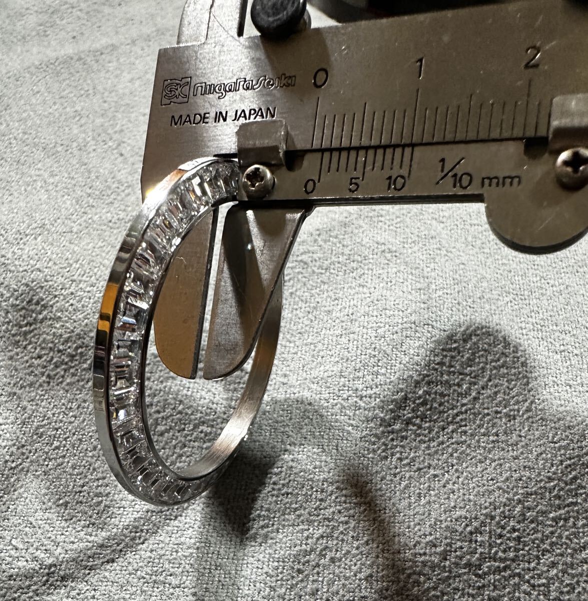 約2年ほど前、ebayにて400ドルくらいで購入。ダイヤもしくはジルコニアなどの屈折率の高い石です。