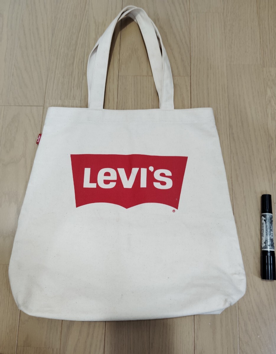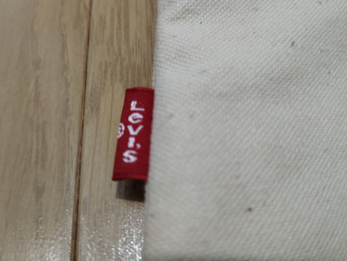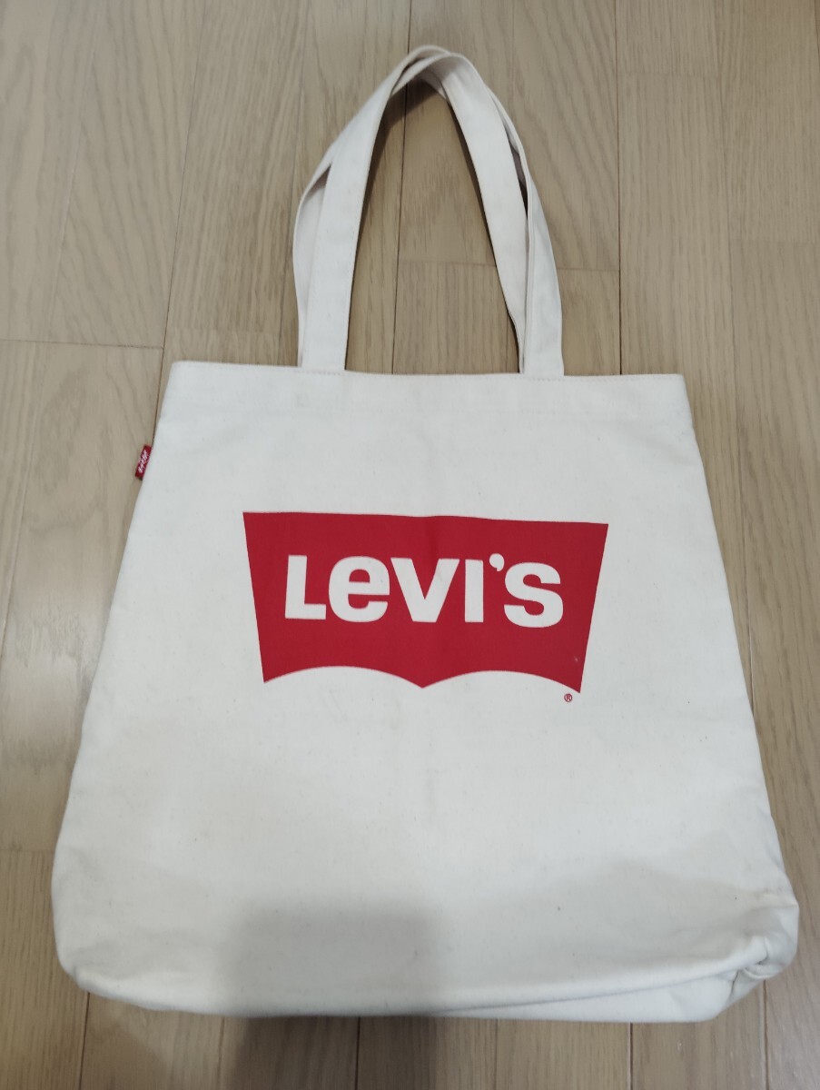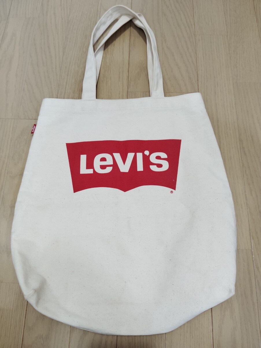 【商品説明】:キャンバス生地仕様、《Levisリーバイス》のロゴプリントデザイン、サイドにリーバイスダブ付き、さらに内側上部にポケット仕様、非売品のアイテムです。
