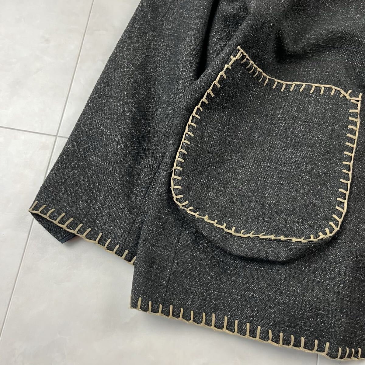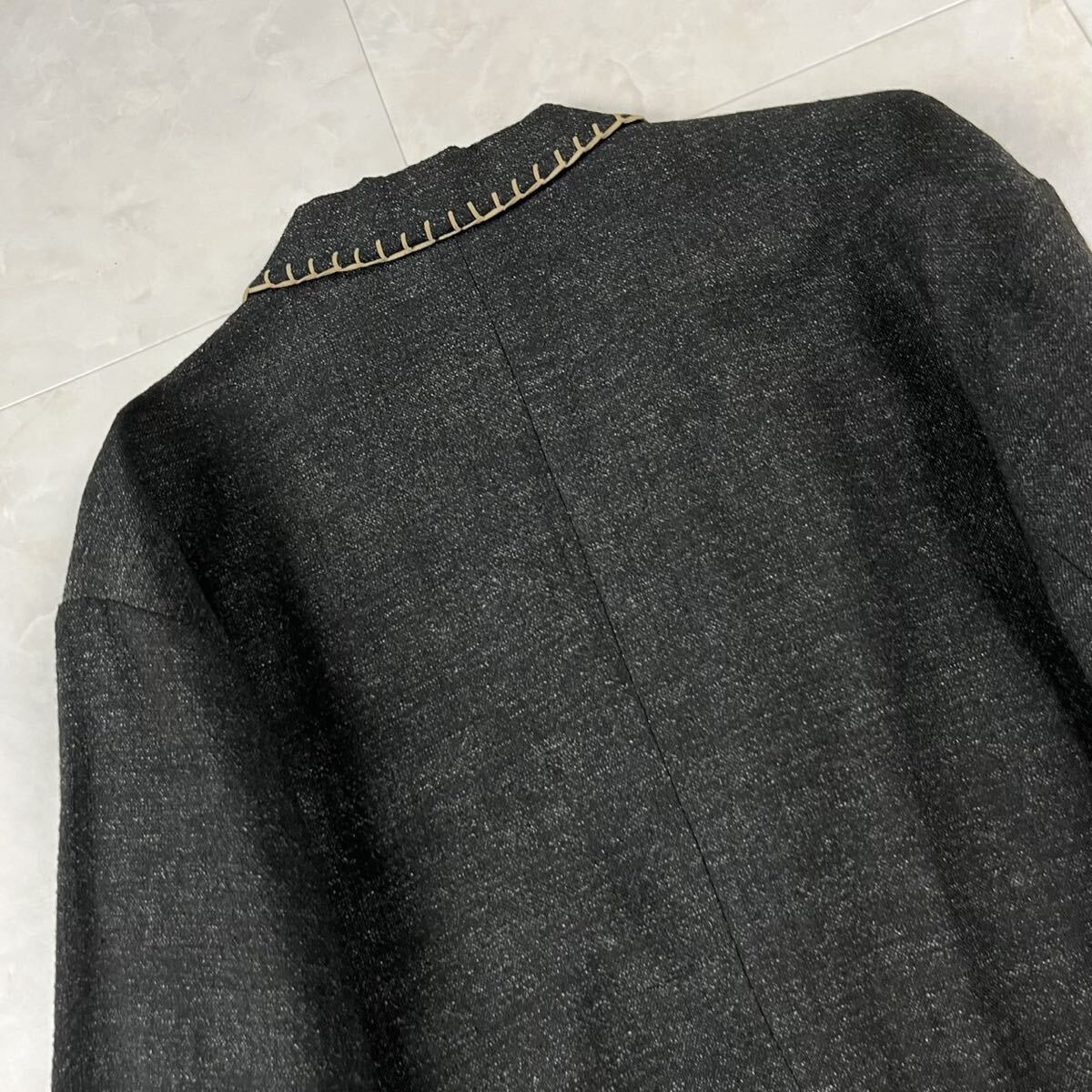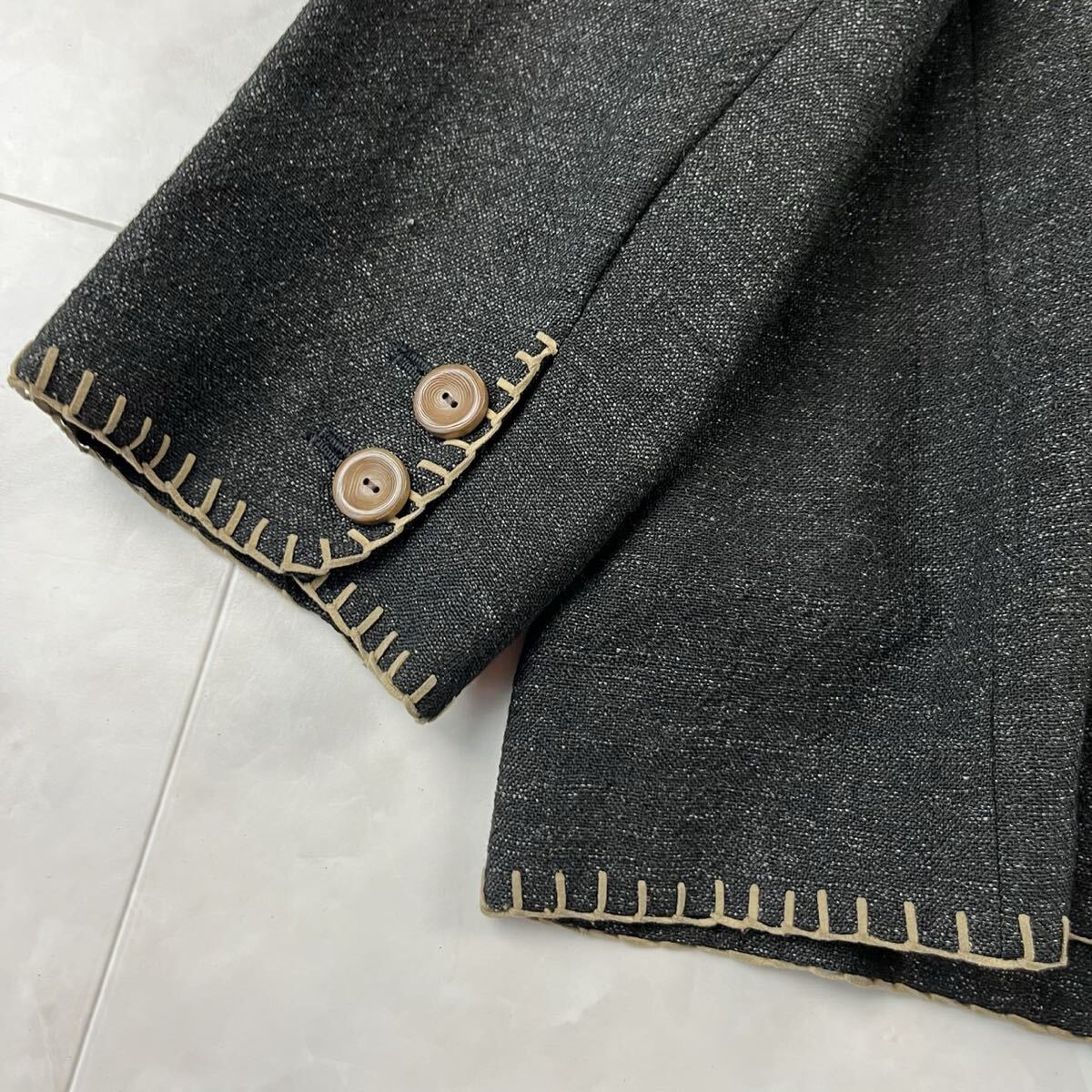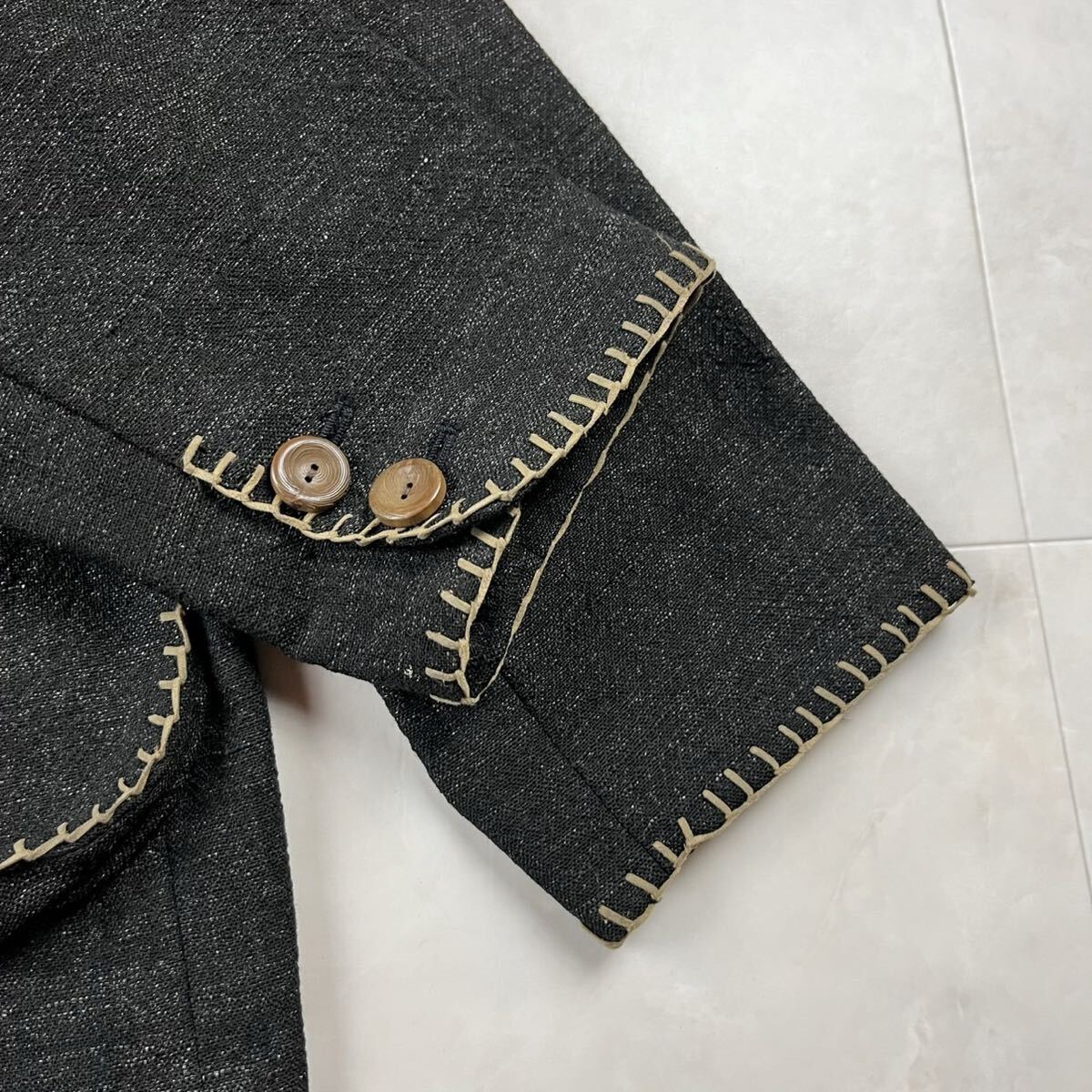 個性的なステッチ装飾が目を惹く、NICOLE(ニコル)のテーラードジャケットです。大人の落ち着きと遊び心を兼ね備えた一着で、オンオフ問わず着回しが可能です。希少なデザインでお探しの方におすすめです。