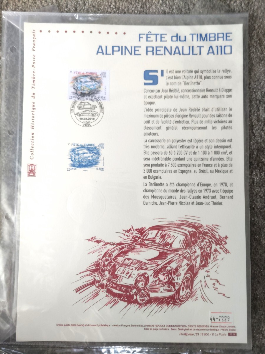 2018年10月3日付けのパリのオシャレな消印付きのA4サイズの台紙に貼り付けられています。