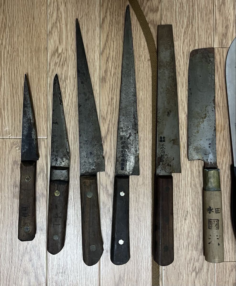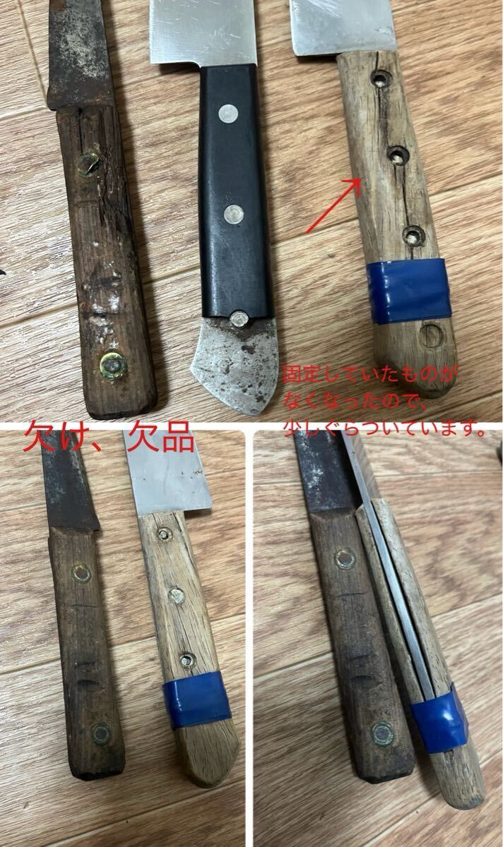 傷、汚れ、埃、サビ、刃こぼれ、刃先折れ、欠品等があります(画像をご覧下さい)。画像に写らないような細かい傷、スレ、汚れなどがある場合もありますのであらかじめご了承ください。