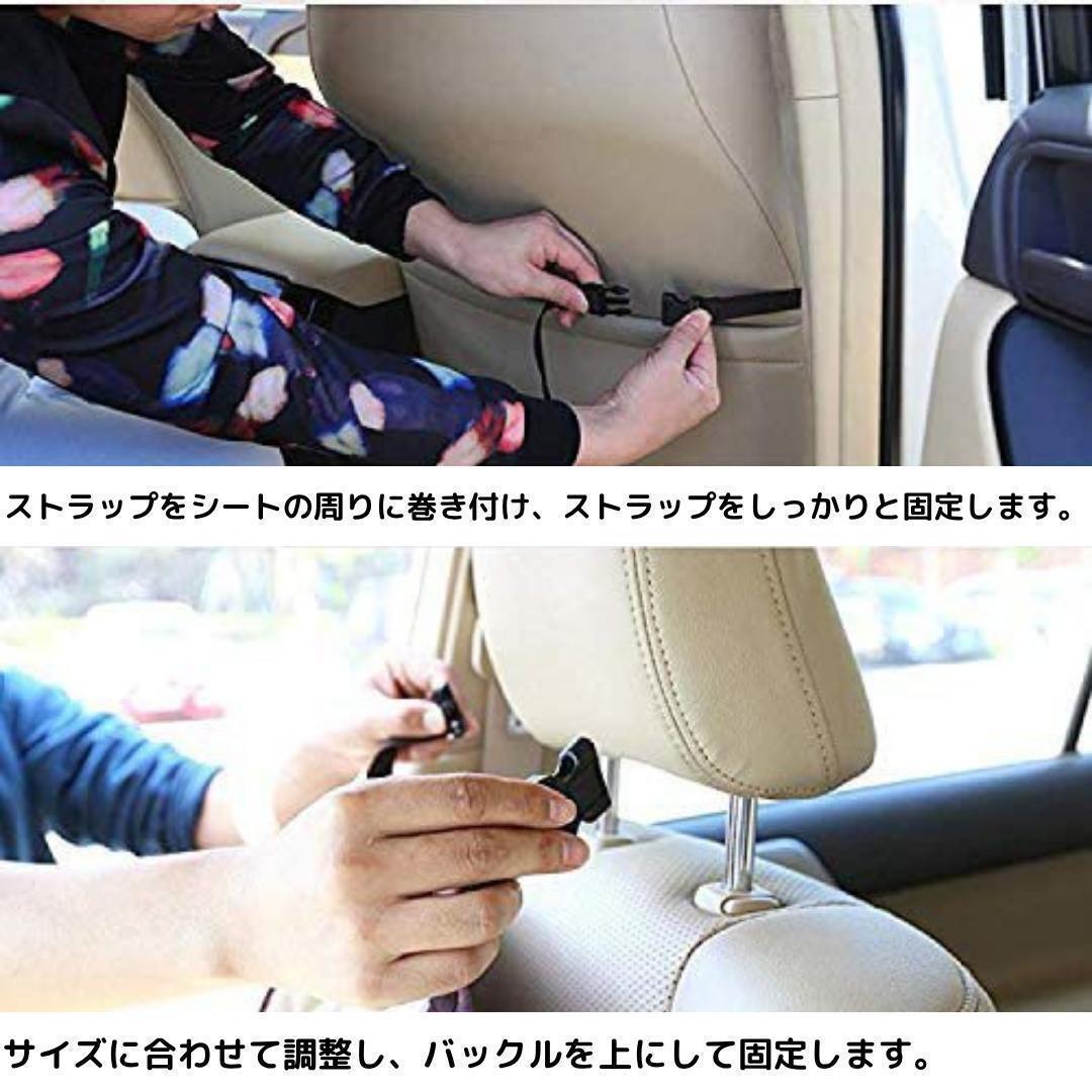 ヘッドレスト部分にしっかり固定できるベルト付き。ぐらつかず安心です。