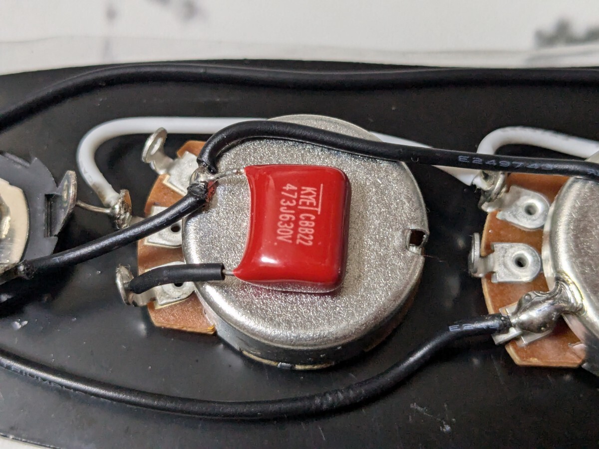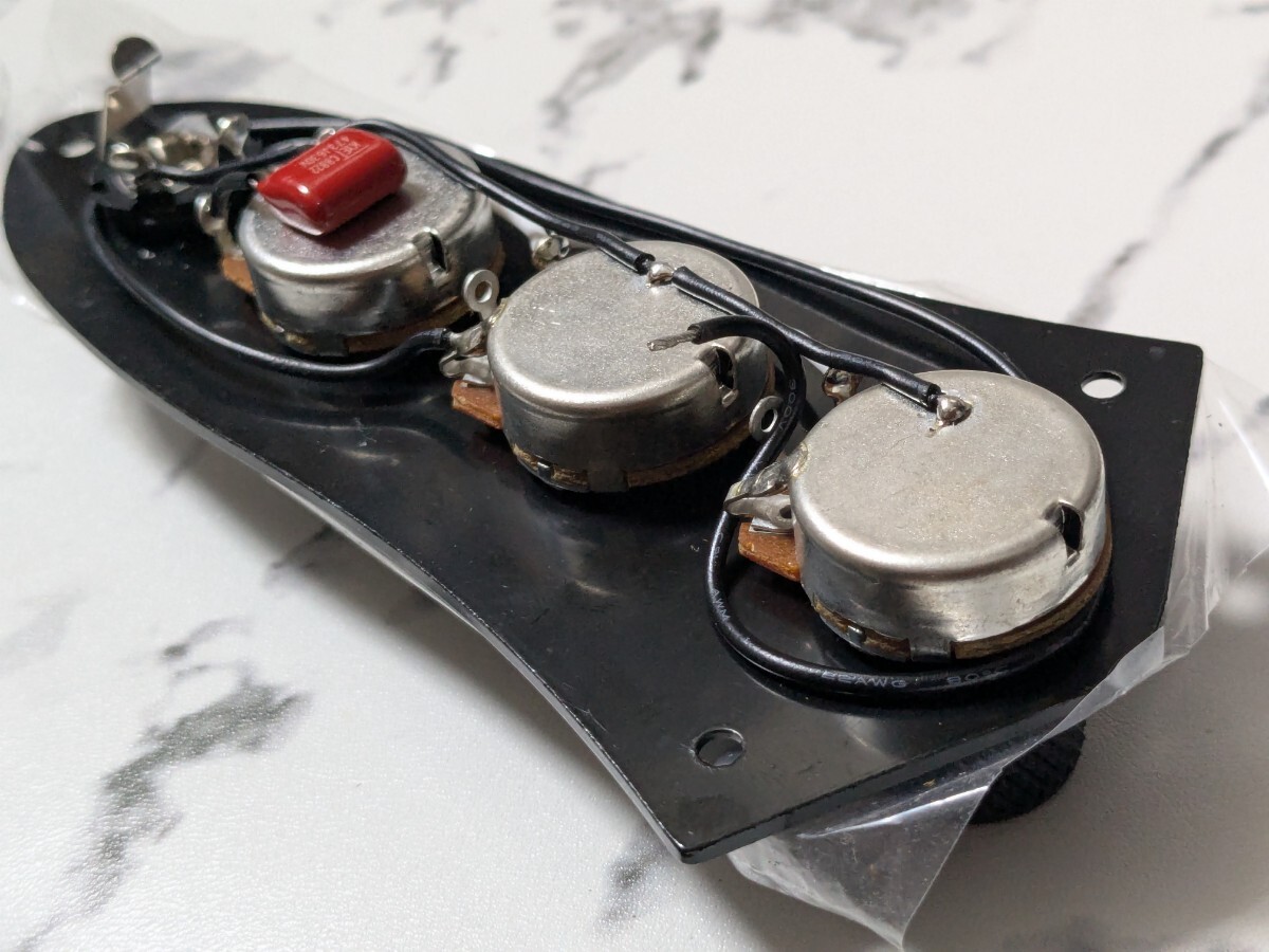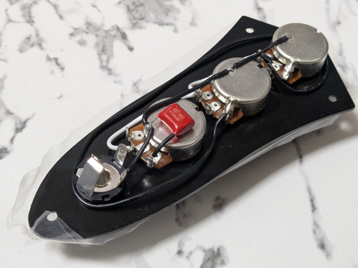 Bカーブ500kΩ×2ボリューム、Aカーブ500kΩ×1トーンのフルサイズポッド、コンデンサは0.047mf。