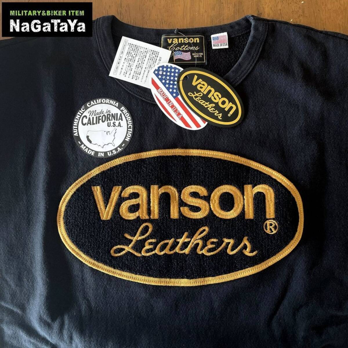 VANSON バンソン USAライン オーバルロゴ 裏毛 スウェットトレーナー アメリカ製 メンズ ブラック Lサイズ NVSZ-2505 MADE IN USA