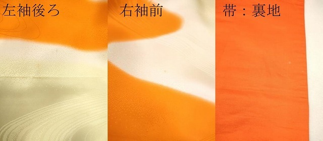 着物【化繊】の状態は接写画像のように左袖後ろに薄い汚れ、右袖前に薄い点シミがございますが その他特に目立ったシミ汚れなどもなく大変良い状態です。 全通柄袋帯【正絹・芯なし】の状態は接写画像のように裏地に薄い汚れがございますが その他表地は特に目立ったシミ汚れなどもなく大変良い状態です。 お安く出品致しますので、是非この機会にいかがでしょうか? |