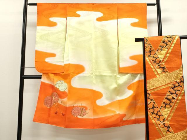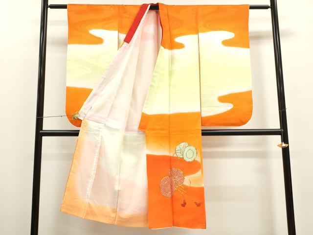 【祝着】 身丈 129cm(肩から) 裄丈 57.5cm(肩上げ 0cm) 袖丈 74.5cm 縫込み 4.5cm 袖幅 31cm 前幅 18.5cm 後幅 26.5cm 着物縫いこみ 内揚げ 0cm (腰上げ 0cm) 裄 お袖側 約1cm 身頃側 約0cm 【帯】 長さ414cm 幅 26cm程 《 サイズについてはこちら 》 |