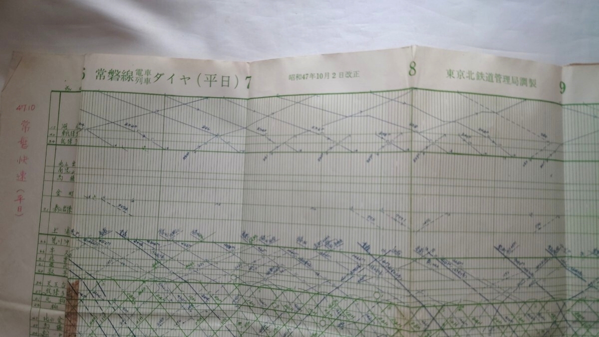 ▽国鉄東京北管理局▽常磐線(快速)電車列車ダイヤ▽昭和47年10月2日改正 ダイヤグラム 運行図表