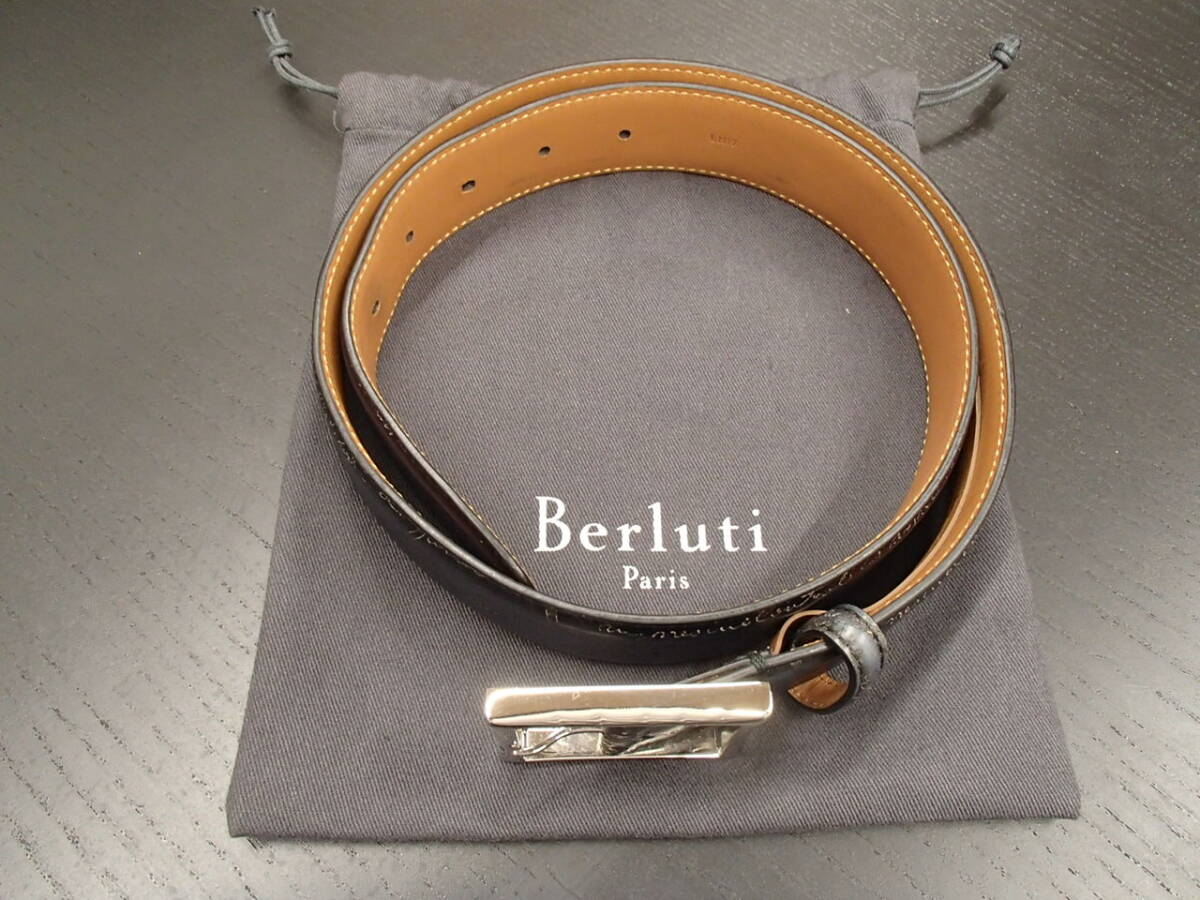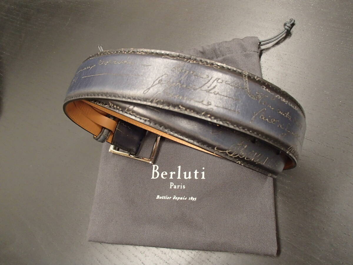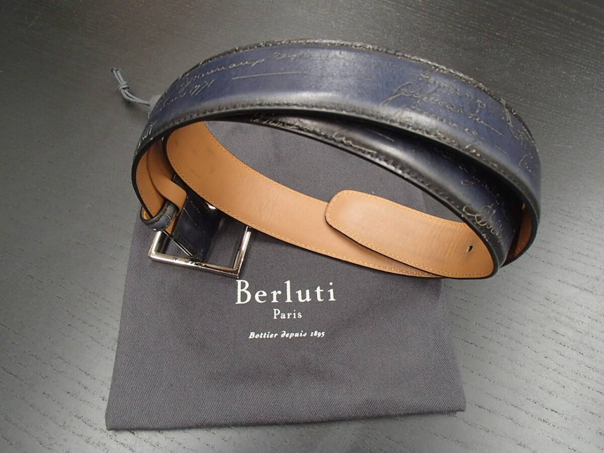Berluti ベルルッティ ベルト カリグラフィ 美品レザー ネイビー 限定品