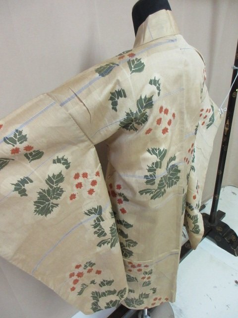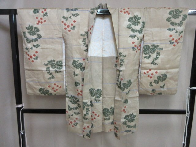 | 商品名 | 1円 中古 羽織 正絹 和装コート 縮緬 アンティーク レトロ 草花 葉 おしゃれ 高級 袷 身丈95cm 裄64cm【夢職】★ |