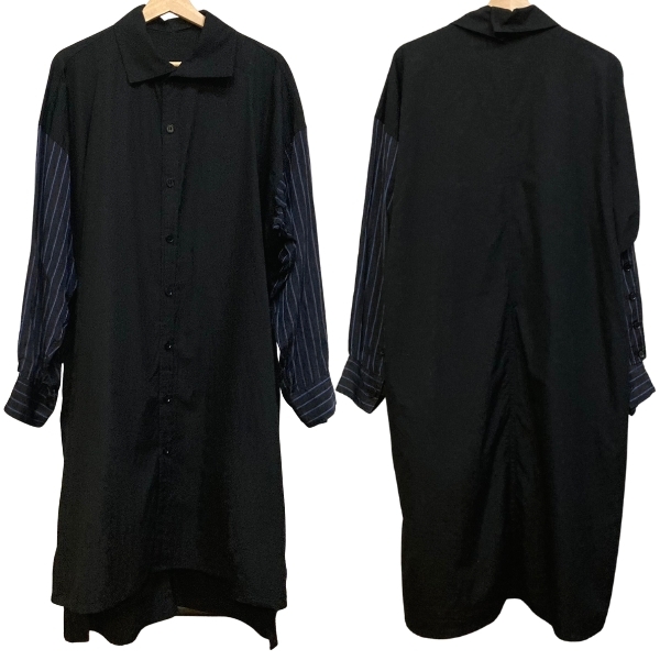 ★美品 ヨウジヤマモト Yohji Yamamoto POUR HOMME プールオム ストライプ 長袖 ロング シャツ トップス サイズ1 春 秋 冬 2019SS