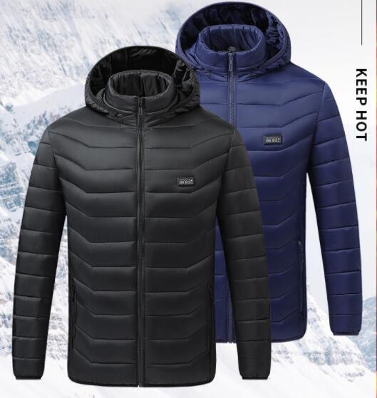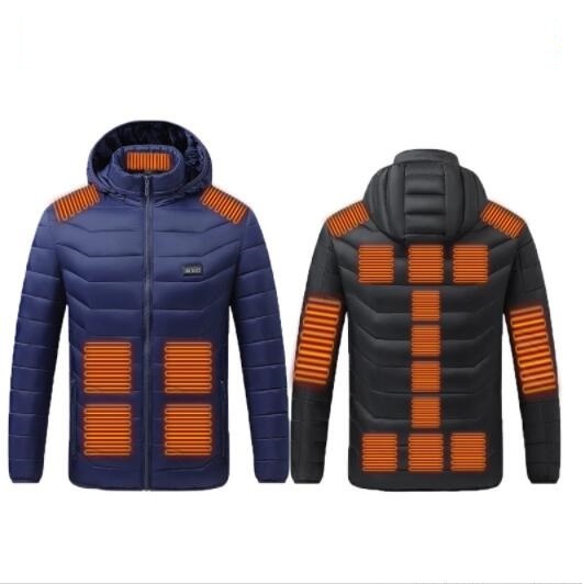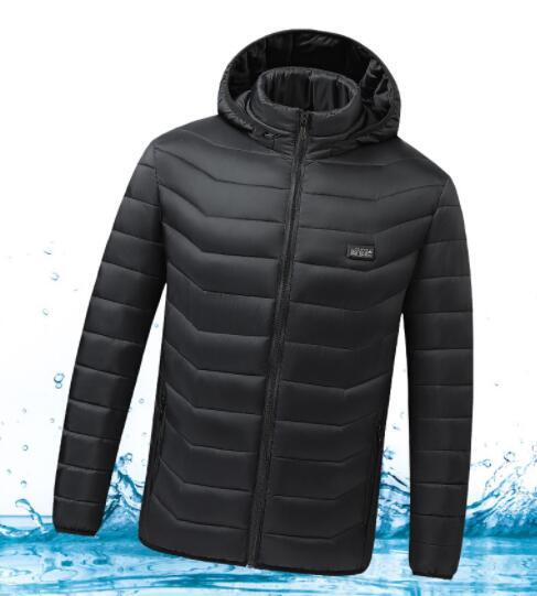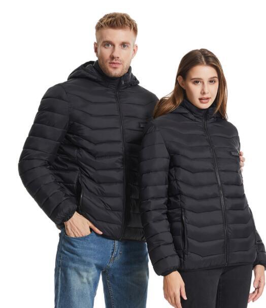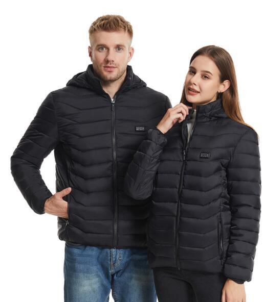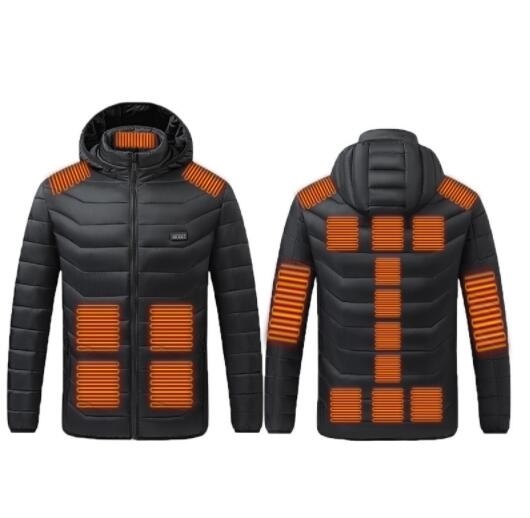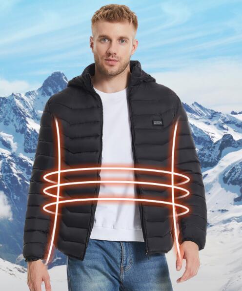 人気品電熱中綿ジャケット 加熱/コットンジャケット 21箇所発熱 5秒速暖 USB給電 急速発熱 3段階調温 SIZE:M 黒