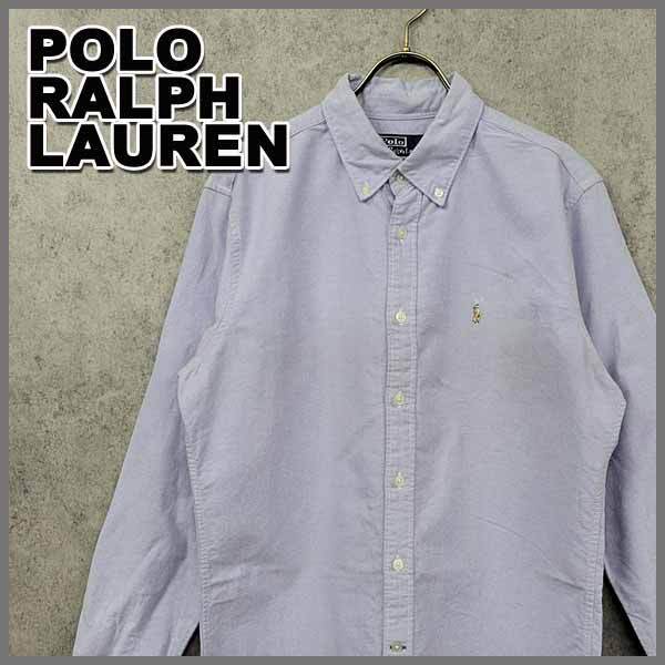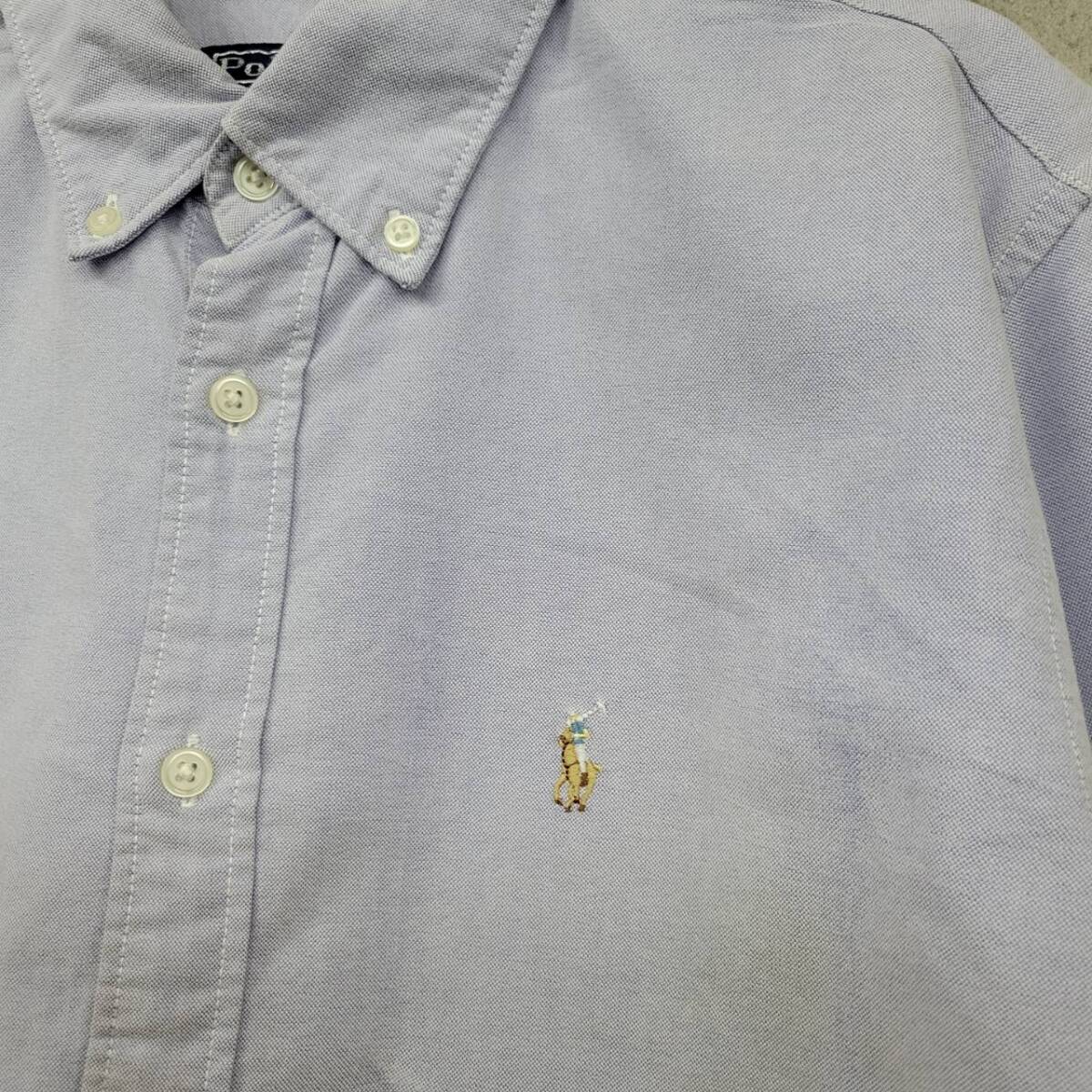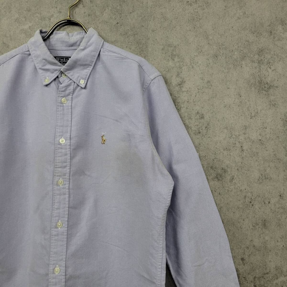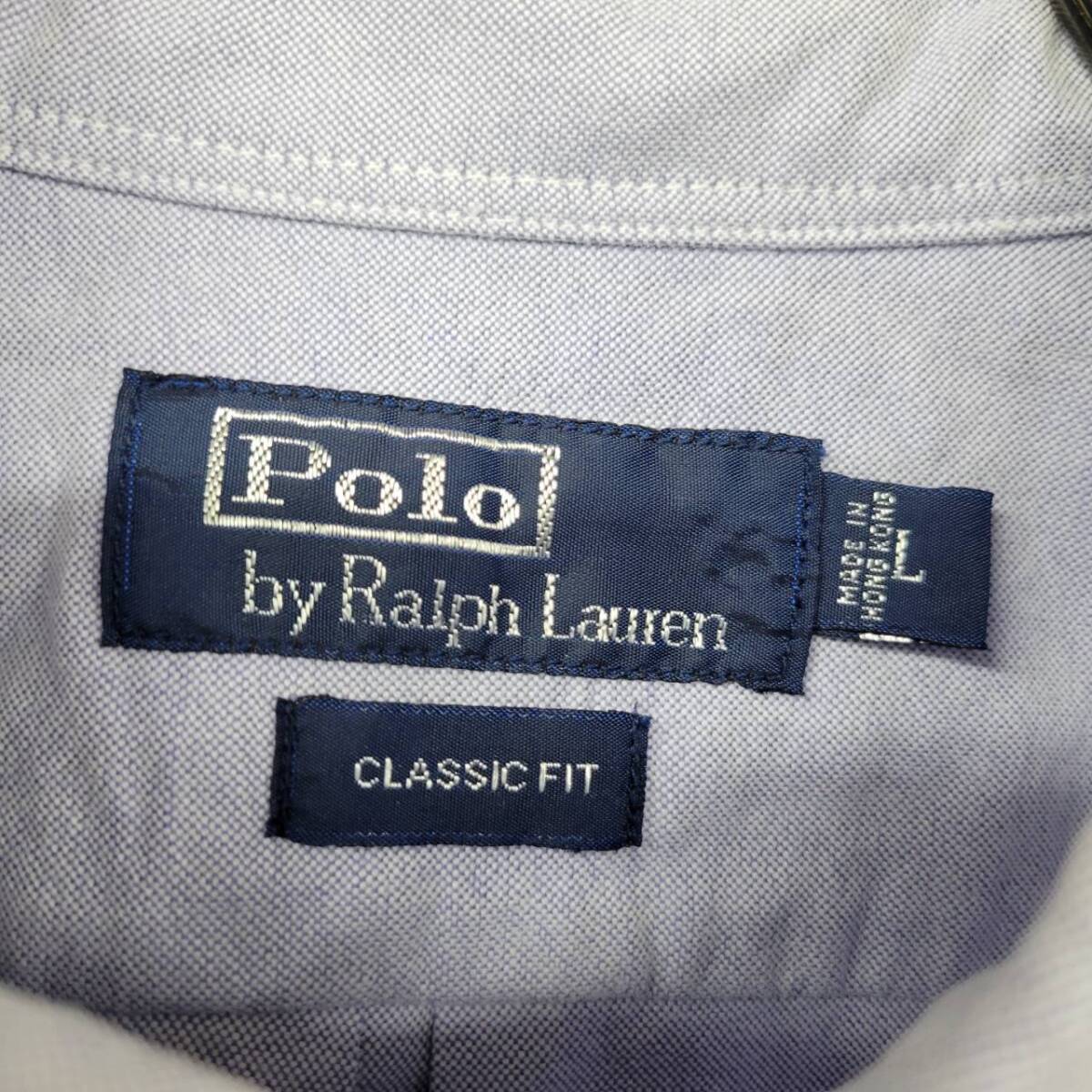 90s ポロ ラルフローレン 刺繍ロゴ ボタン シャツ ブルー L 古着