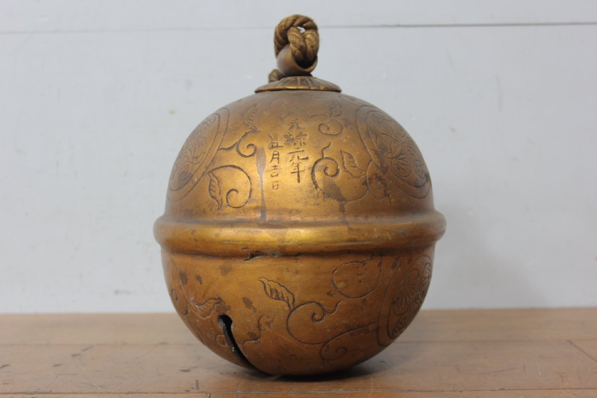 | ☆【1W0923-21】 大鈴 東照宮/元禄元年五月吉日 銅製/古銅鈴/紡骨董/常雲作