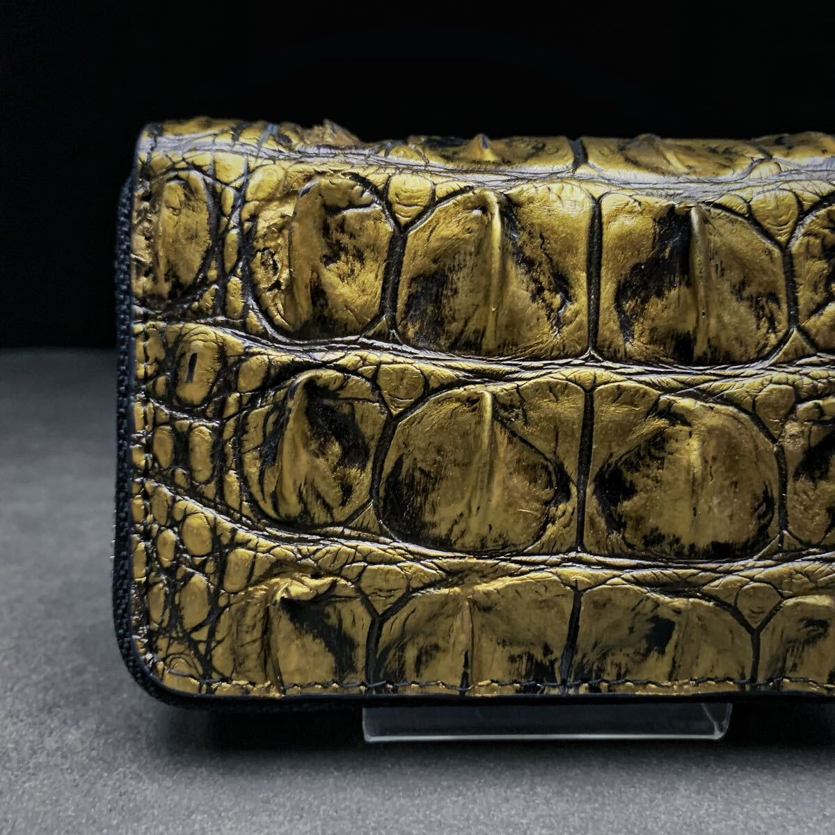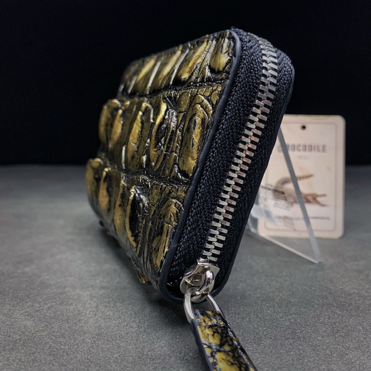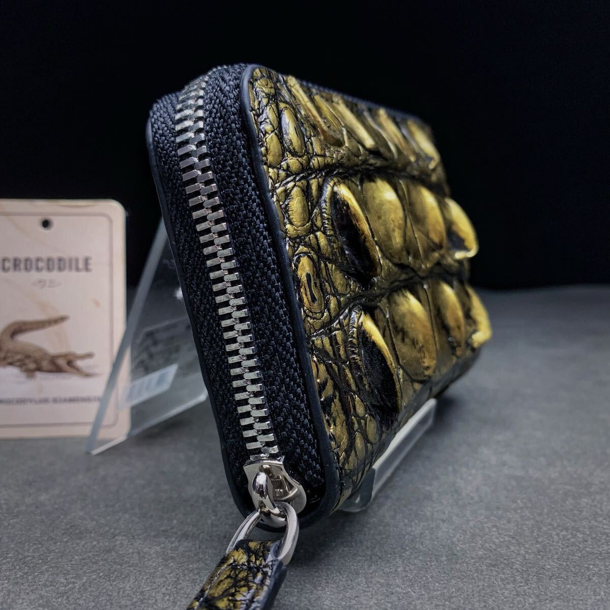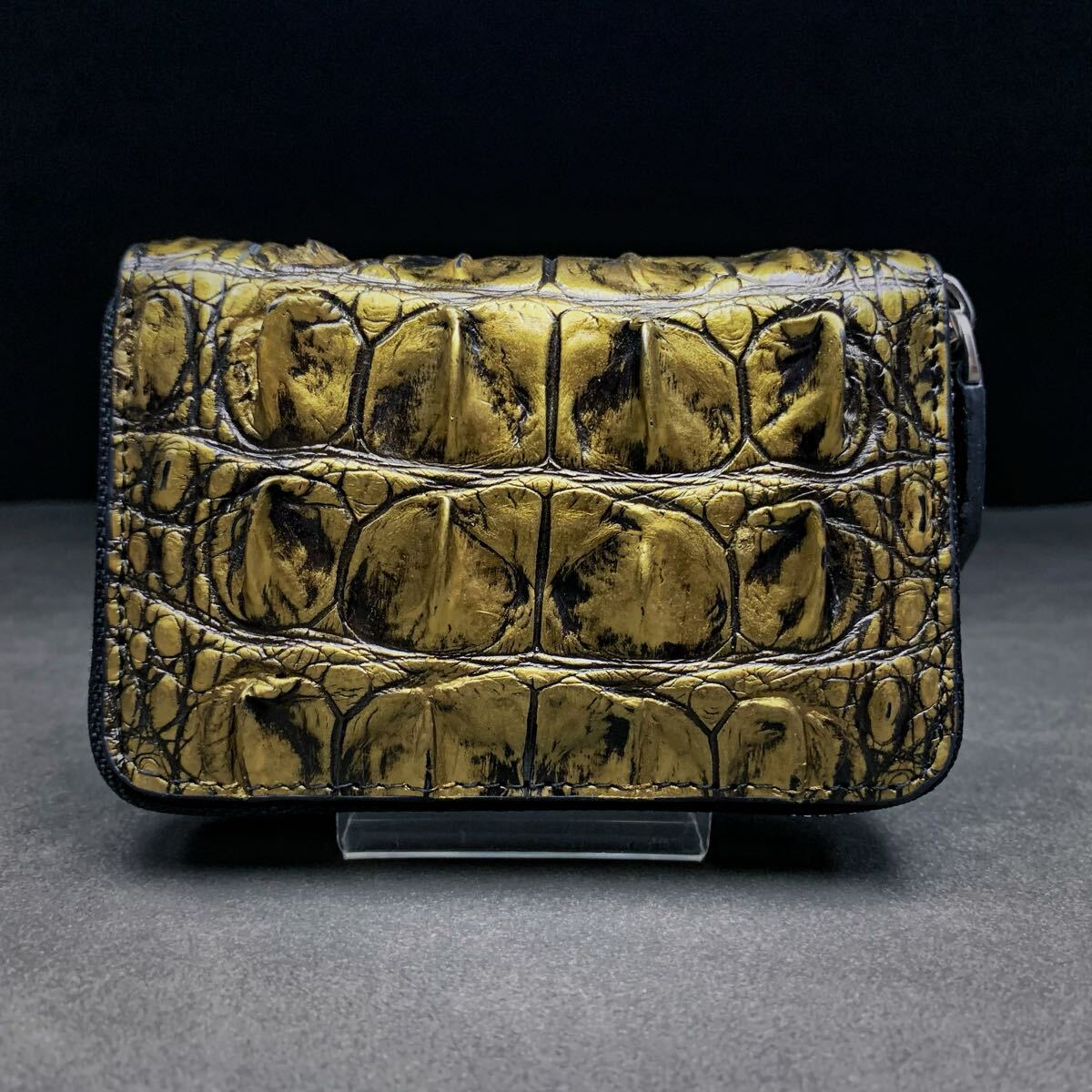 クロコダイル 財布(ラウンドファスナー/センター部位/ハンドメイド/小銭入れ/カードケース/本ワニ/ゴールド染め/ミドルウォレット/実物)