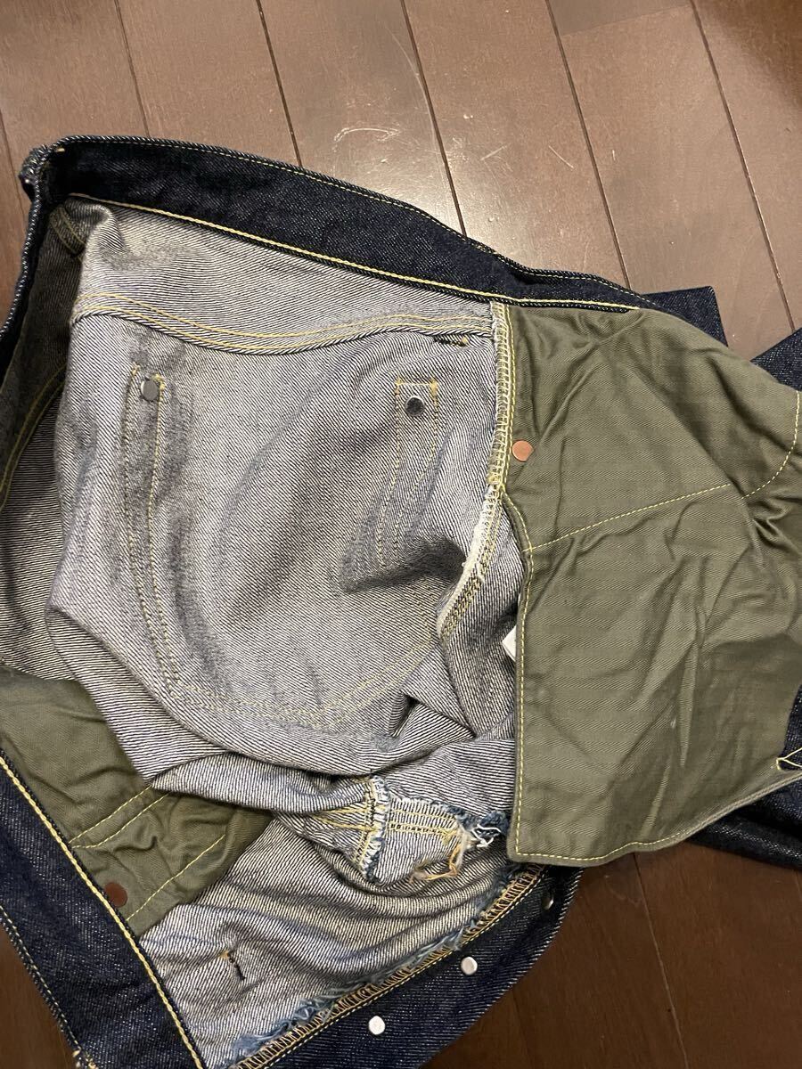 2年程前に購入致しましたが全く履かなかったので、出品致します。洗濯機で糊を落として、試着しただけで新品同様です。スレーキがオリーブ色でとてもカッコいいと思います。色落ちを楽しむにはいい商品だと思います。