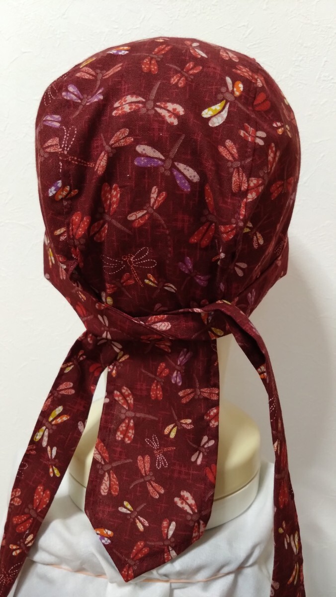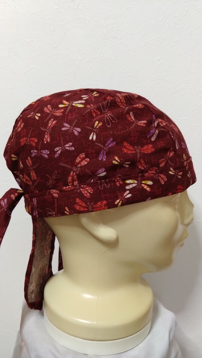 ★バンダナキャップ★ハンドメイド 和柄 とんぼ 井絣 赤 えんじ