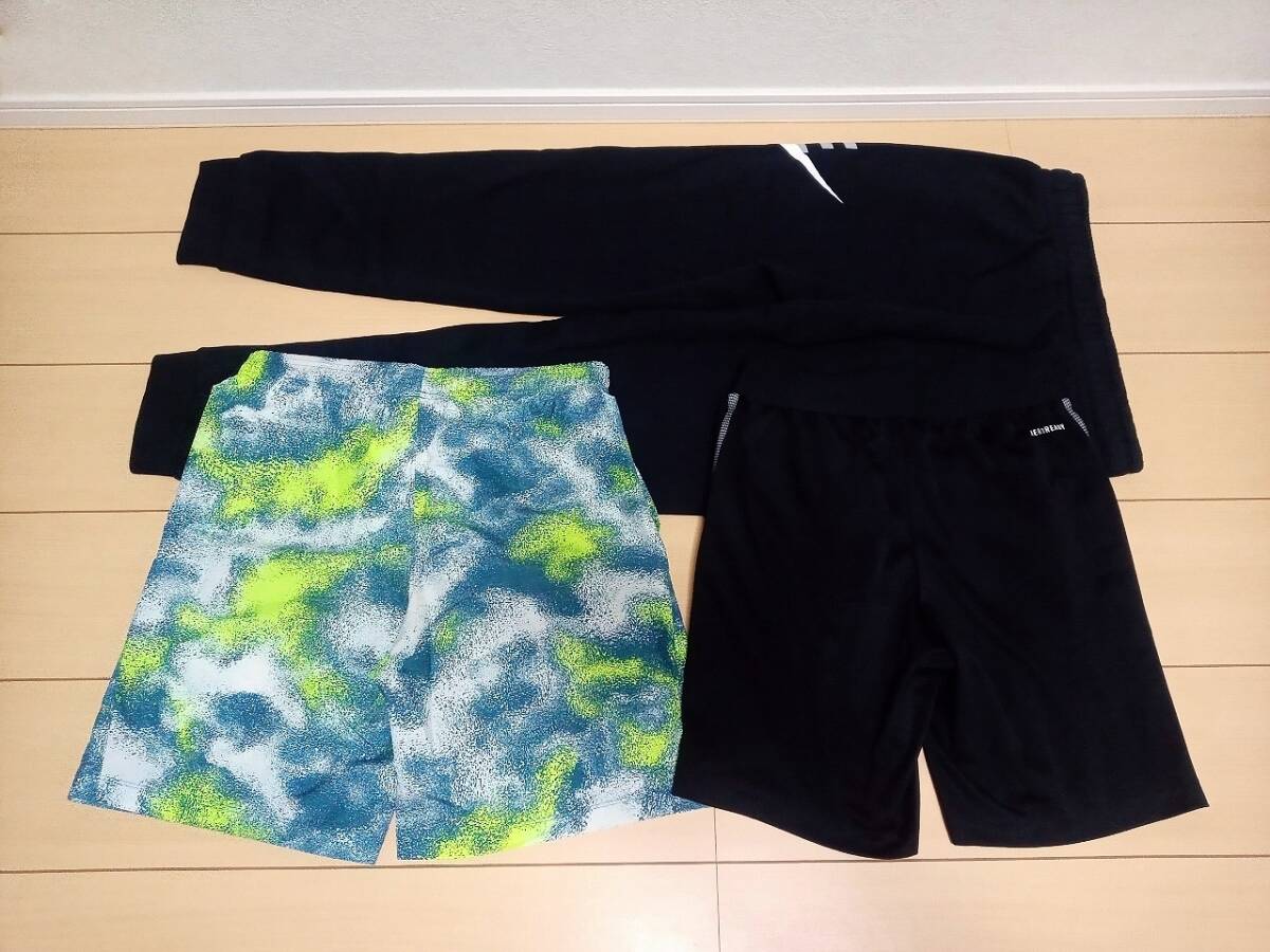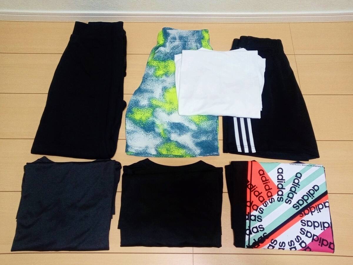 半袖Tシャツが3着、長袖Tシャツが1着、短パンが2着、長ズボンが1着、