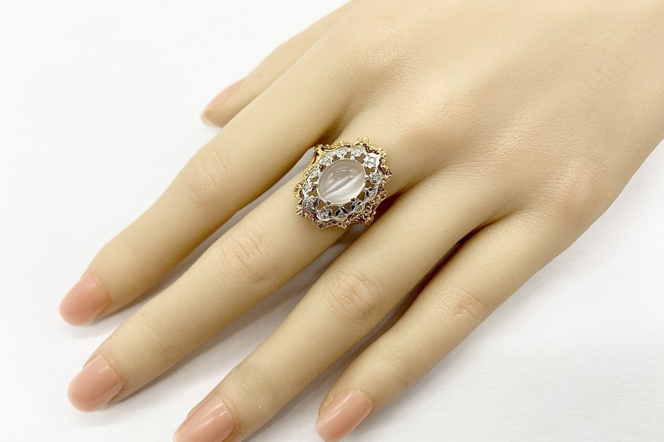 | 品名 | 【Moonstone】 K18/Pt900ムーンストーン ダイヤモンドリング |