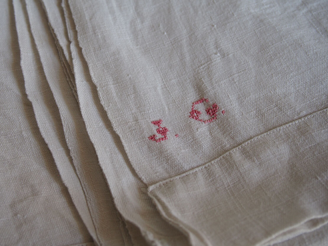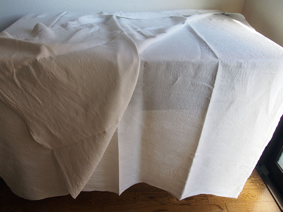 クロス刺繍のシーツ 220cm×長245cm ベッドリネンシャンブルリネン ホワイトリネン フランス シャビーシック ファブリック アンティーク/K249 ●サイズ:220cm×長245cm 1095g●材質: リネンまたはリネン綿混紡 欧州のアンティーク市にて入手。1930年ぐらい。 中央に幅を広くするための継ぎ目あり、2枚ハギ。昔は幅広の織機が普及していなかった為、数枚を継いで幅の広いシーツを作っていました。角に小さなクロス刺繍のイニシャルJOあり、洗濯場で他の家庭のシーツと間違えないように刺されたものです。 昔のナイティなどにも利用された、素朴な平織りリネンです。洗濯済み。昔の手作業をお楽しみ下さい。参考資料、リメイクなどにもどうぞ。ファブリック、衣装、手芸関連を得意としております。他の商品も是非ご覧下さい。 詳細は写真でご確認いただけます。古い物だと言う事をご理解の上のご入札をお願い致します。材質及び年代の判定は困難な場合があります、差異についてはあらかじめご了承下さい。 ー ー ー ー ー ー ー ー ー 記載にない方法での発送はいたしません。 発送をお急ぎのお客様にはご希望に添えない場合があります。 ー ー ー ー ー ー ー ー ー ●その他 ヤフオクの小さな写真では商品を詳細にご覧頂く事ができません。リンク写真で質感ダメージ等の写真を数多くアップしています。必ず全部の写真がよく見える環境でご覧下さい。本商品は時代を経た古い物です。写真や説明で記載できないようなキズやシミ、古い物特有の臭いのある物もあります。できる限り詳細に説明するよう努力しておりますが、ご理解頂ける方、神経質で無い方、埃によるアレルギー等の無い方のご入札をお願いします。 必ず当店の自己紹介欄と落札後の落札通知をご覧下さい。 土曜日曜日は基本的には定休日です。メール、質問への回答は月曜日にいたします。 ご連絡は落札後48時間以内にお願いします。ご連絡が無い場合はお客様都合によるキャンセルとさせて頂きます。落札から1週間(土日祝日含む)経過してもご入金が無い場合も同様といたします。ご注意下さい。 特に評価「0」の新規のお客様、および 私とのお取り引きが初めてのお客様は遅れる事の無い様にお願い申し上げます。 評価の悪いお客様のご入札は取り消す場合があります。 入札の取り消しおよびキャンセルは固くお断りいたします。 自己紹介欄には急な連絡事項等も記載してあります、ご入札前に必ずご覧下さい。落札後には『落札通知』の内容も必ずご確認ください。 当オークションをご覧下さりありがとうございました。 Accept Paypal payment |