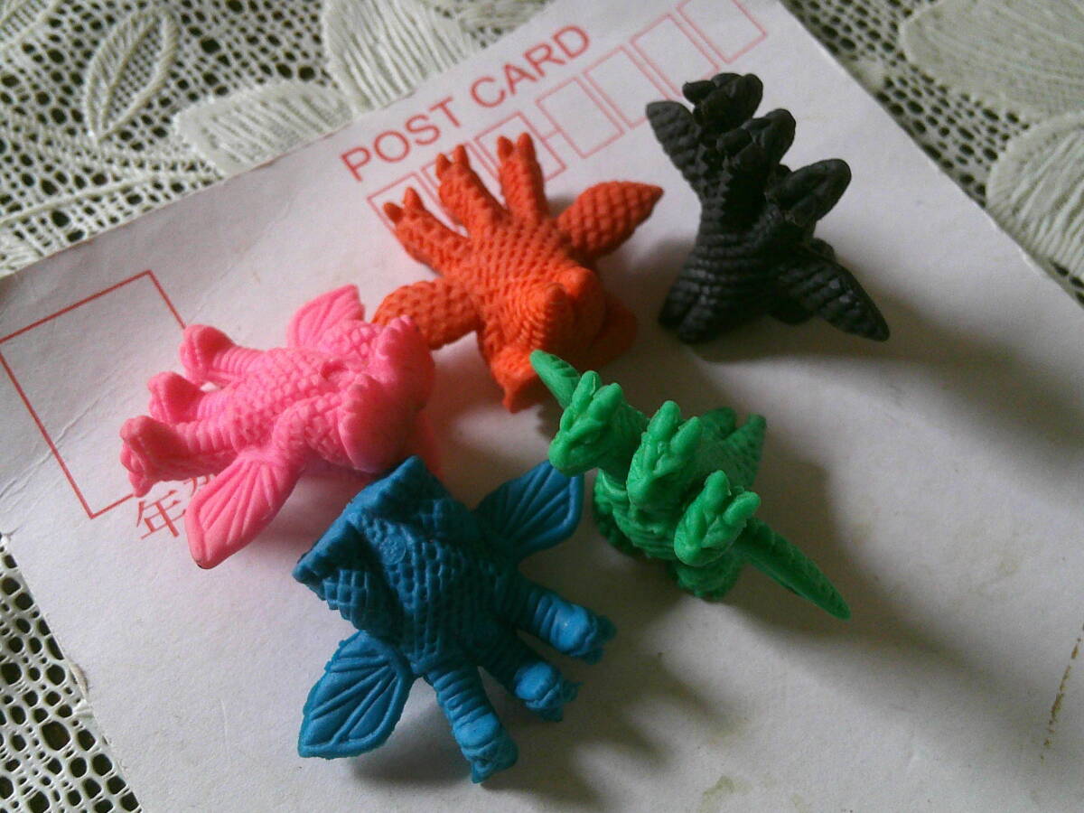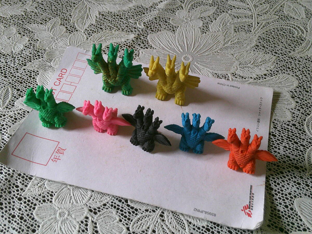 当時物 怪獣 消しゴム ゴジラ 【キングギドラ 7個】 ポピー 東宝 映画 東宝 玩具 フィギュア レトロ キャラ消し ビンテージ まとめ売り