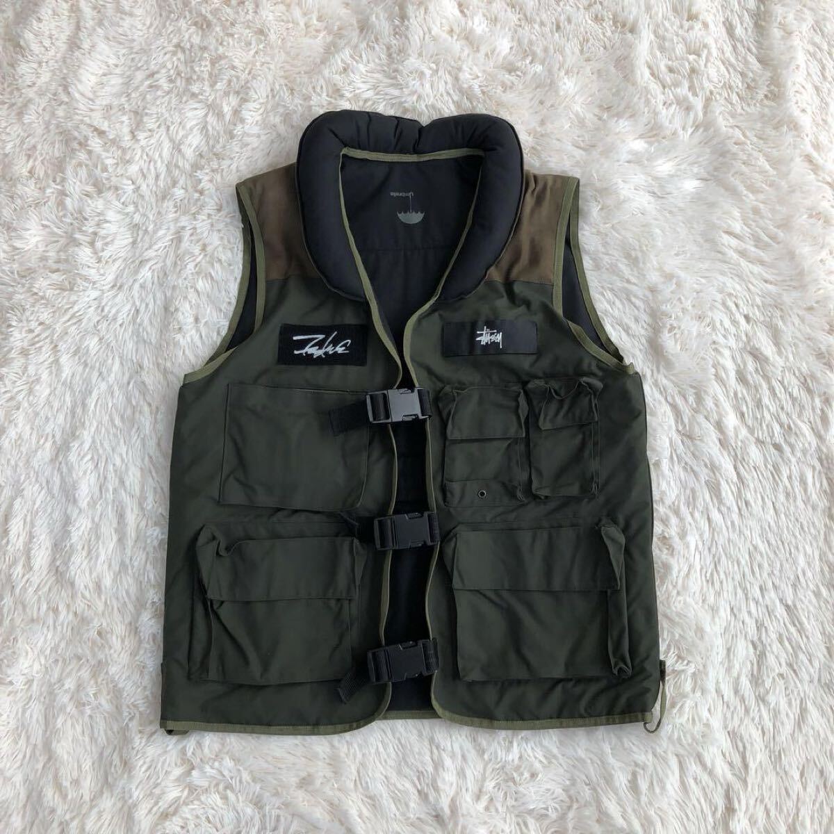 こちらの商品はSTUSSY×FUTURA中綿リバーシブルベストカーキブラックステューシーになります。