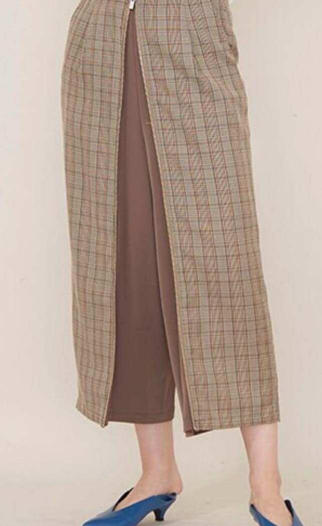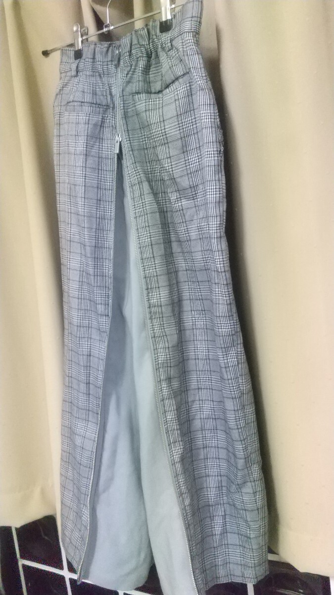 前後ろのファスナーを閉めるとタイトスカート、あけるとパンツになります