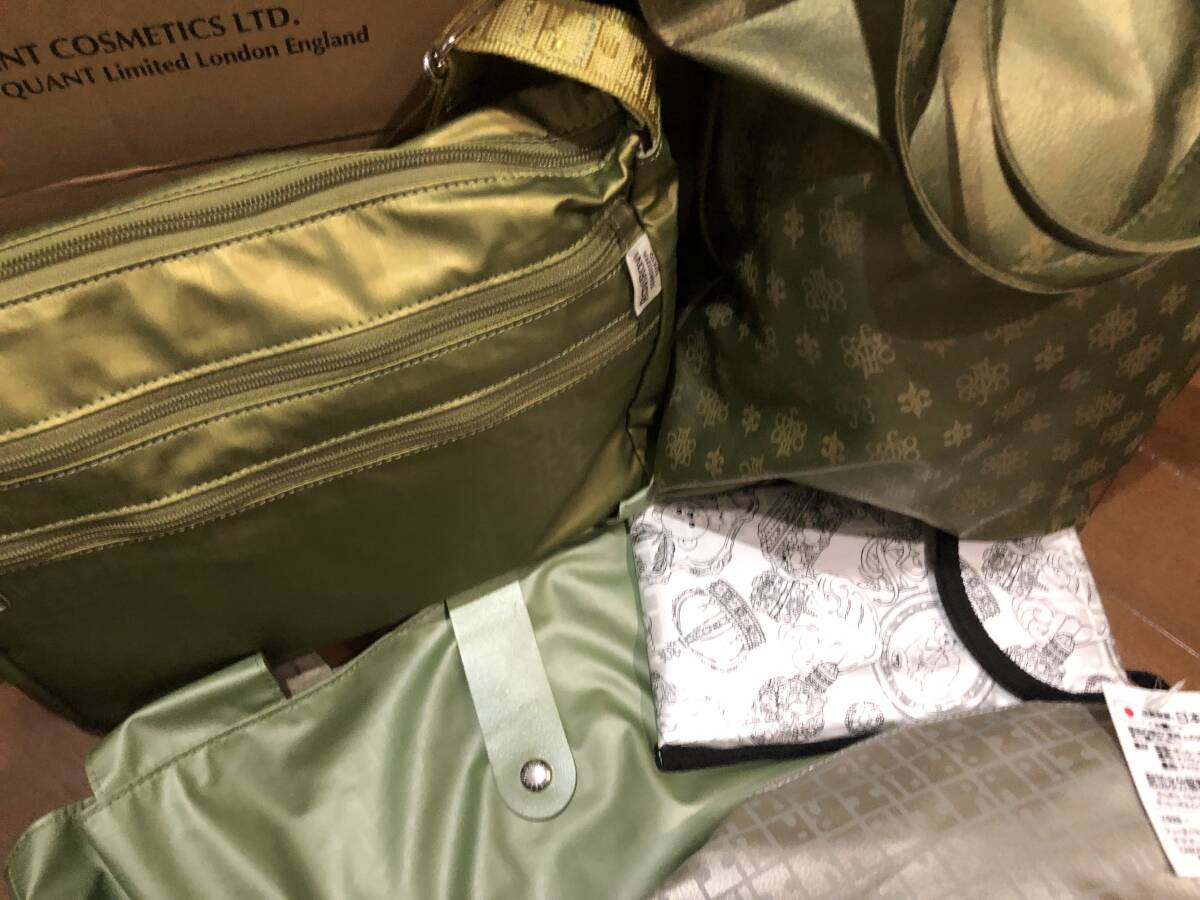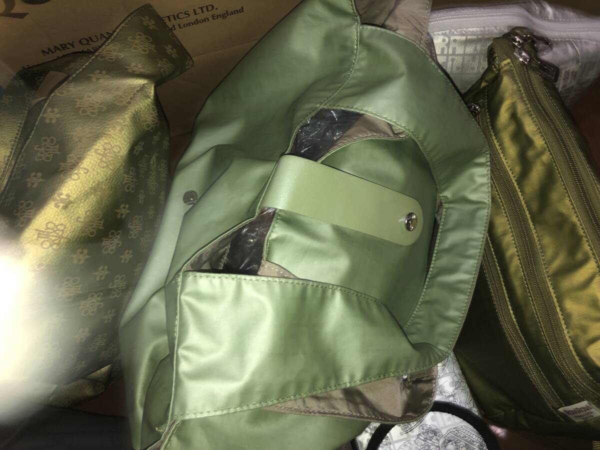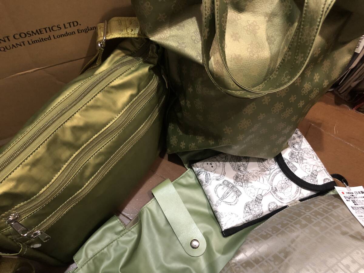 通販サイトで人気のあった伝説の撥水、軽量、丈夫な便利バック、ヤマト屋さんの希少色ピスタチオ系の角ポシェット1点、グリーン色の大きめエコバッグ1点、超希少の利休色のミニトートバッグ1点、プラチナ色の大きめポーチ1点、ホワイト色テディベア柄の携帯入れ1点の全部で5点になります♪