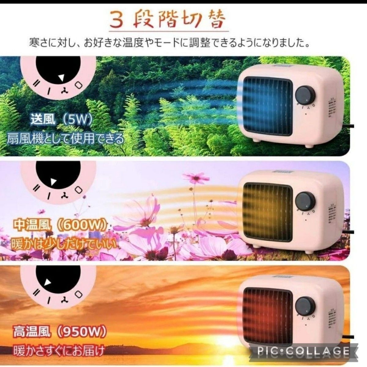【3段階切替&暖房器具 省エネ】高温風(約900W)・中温風(約600W)・送風(約3W)の3段階出力モード。低消費電力、高効率、省エネ。お好きな温度に調整。ダイヤルスイッチ式。