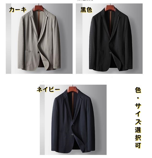 テーラードジャケット メンズ*新品 スーツジャケット カジュアルジャケット 超ストレッチ ブレザー 春服夏服薄め【YD8775】カーキ 2XL