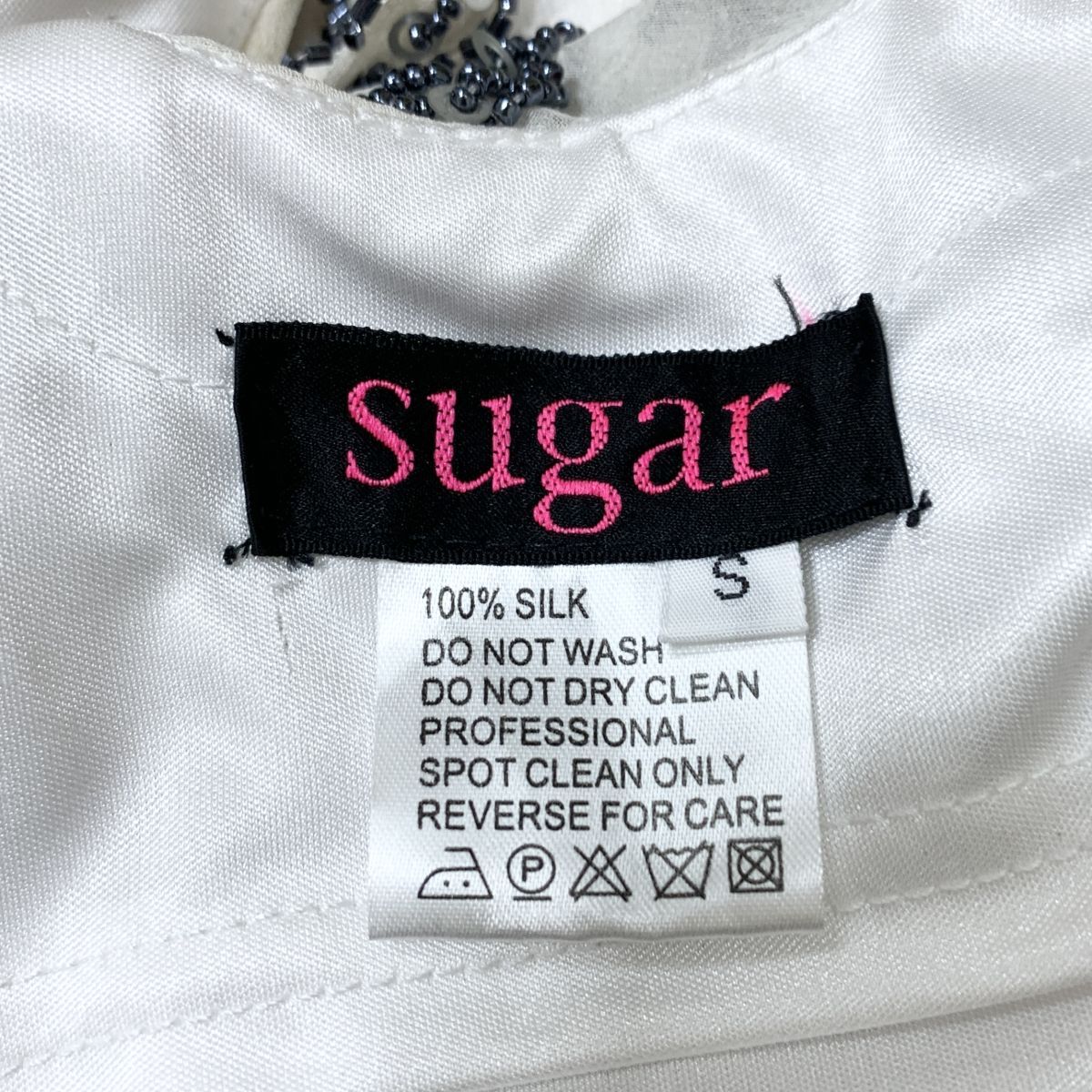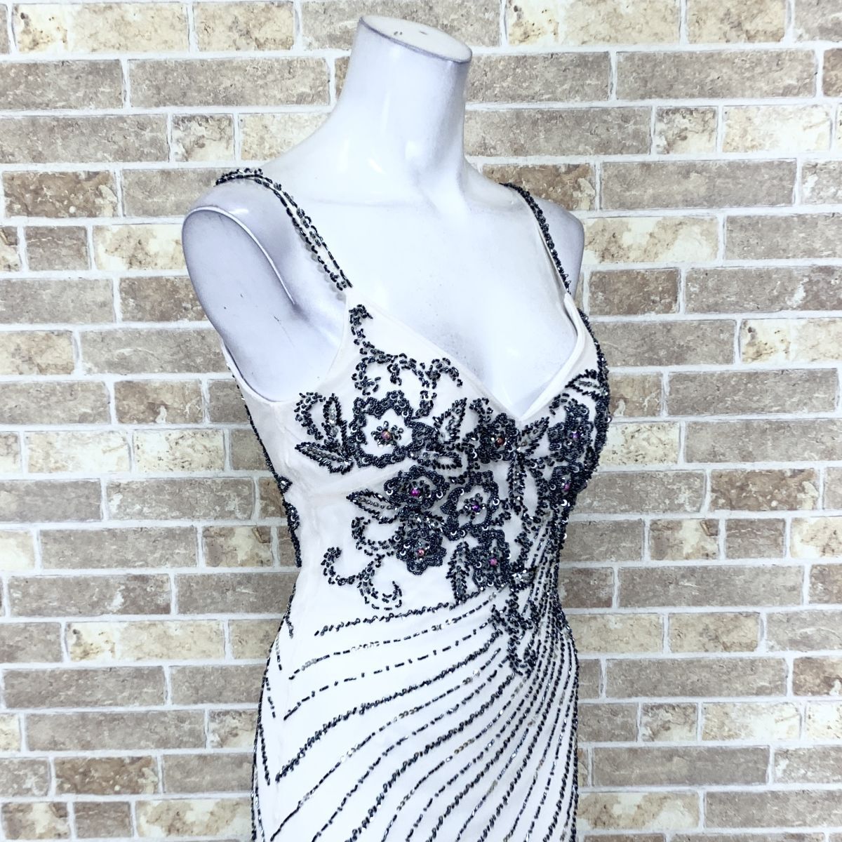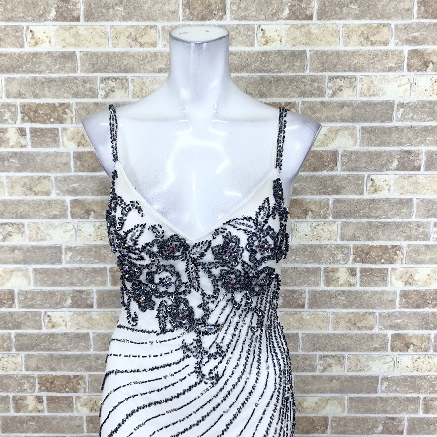 1円 ドレス sugar ロングドレス S 白グレイ グラデーション SILK 100% パーティードレス キャバドレ 中古14668