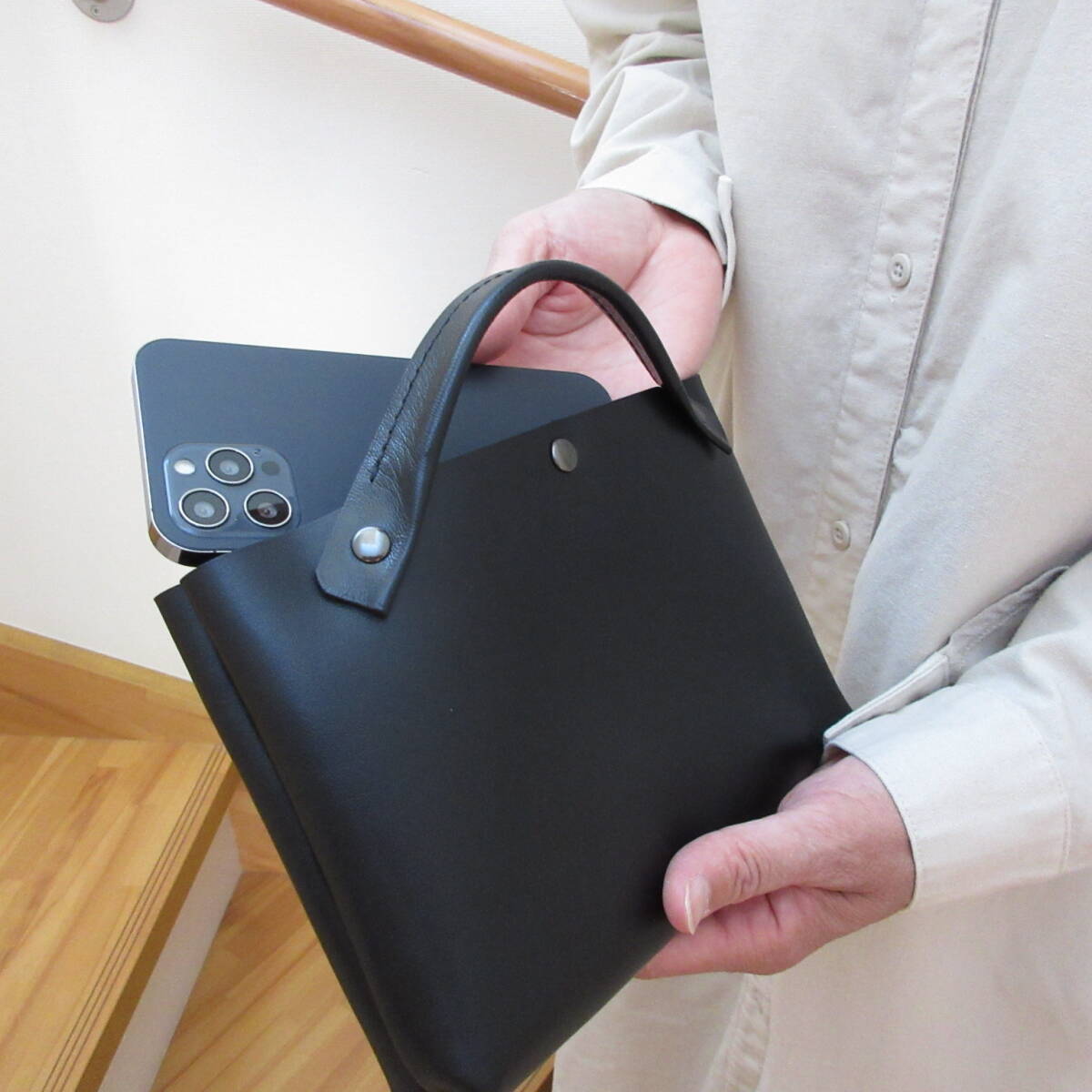 ◎ハンドル付きのトート仕様なので普段持ちでも違和感なくお持ち頂けます。