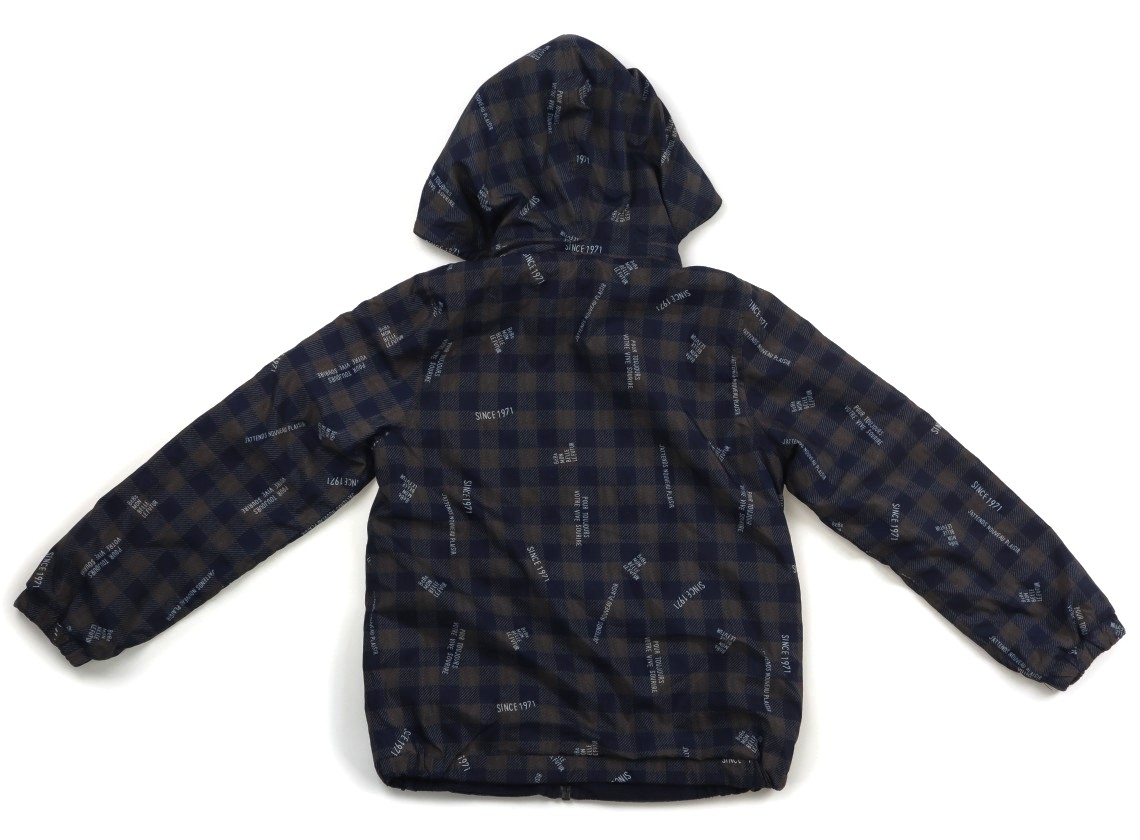 ポリエステルとフリースのリバーシブルデザイン。フードの取り外しが可能です。両面共に全体的に使用感がありますが、特に目立つ汚れはなくまだお使い頂けそうです。