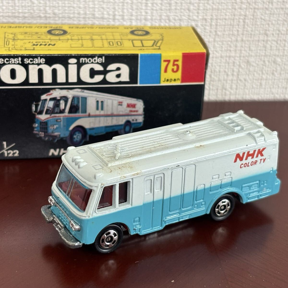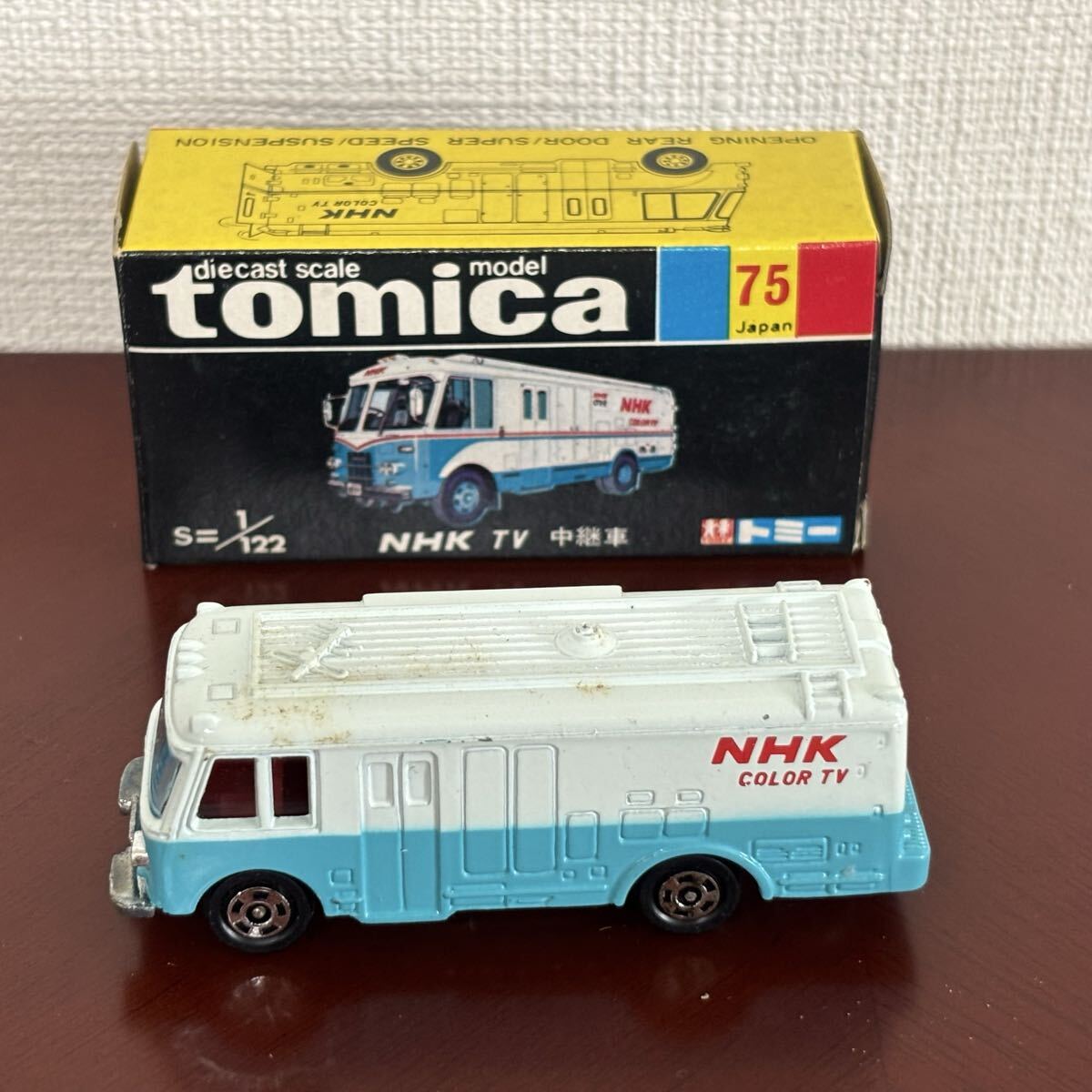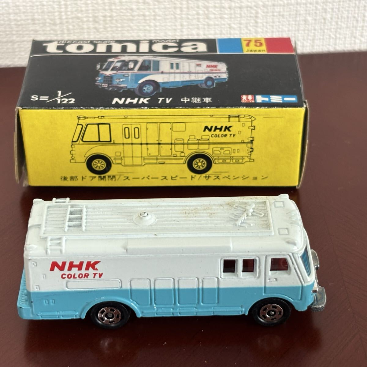 No75 コレクター放出品★ TOMICA 「NHK TV 中継車」旧車 ミニカー 箱あり 希少品 日本製 黒箱 1円スタート