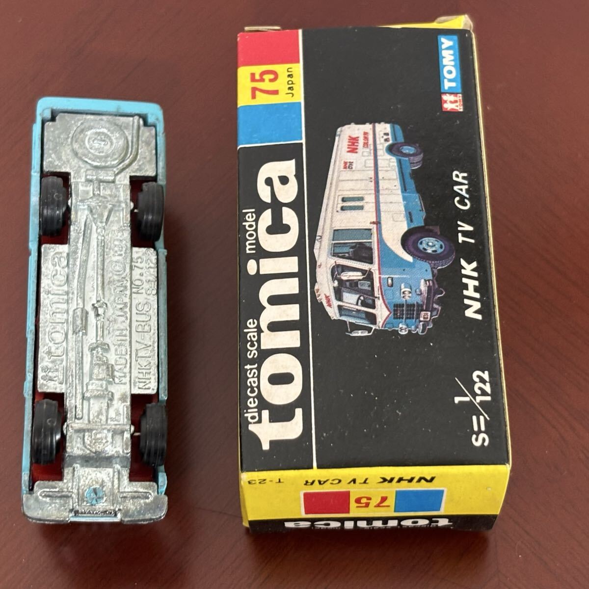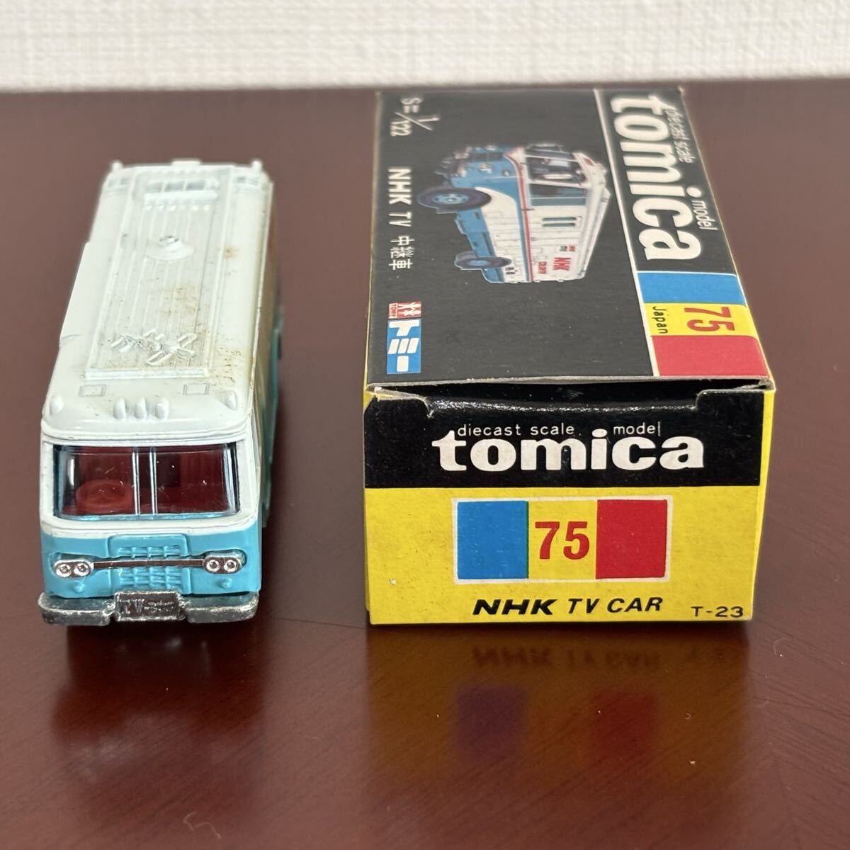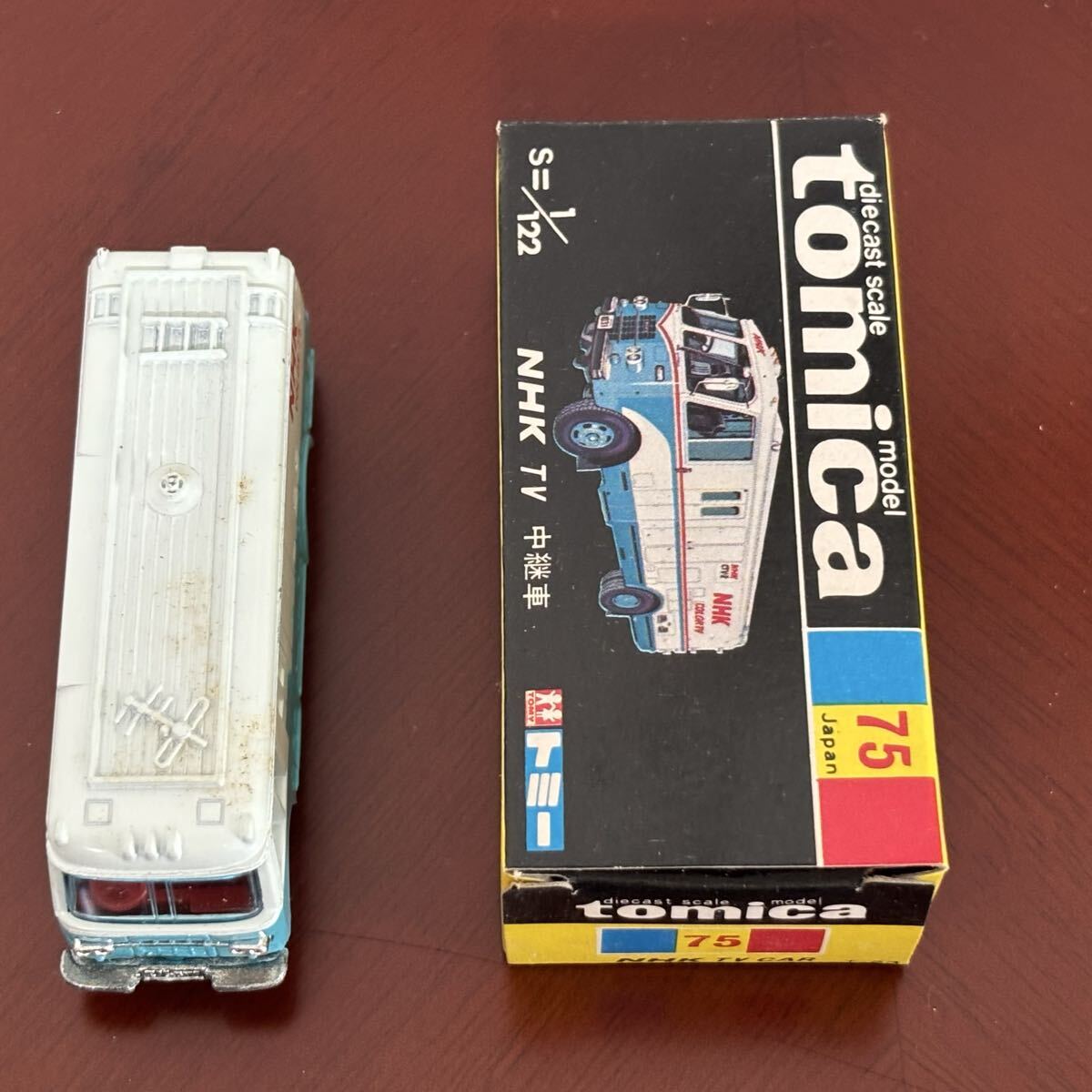 No75 コレクター放出品★ TOMICA 「NHK TV 中継車」旧車 ミニカー 箱あり 希少品 日本製 黒箱 1円スタート