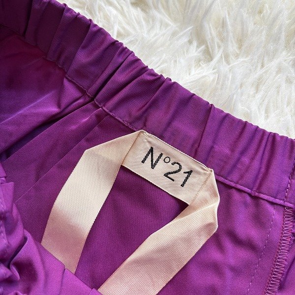 ハリのある、ほんのり光沢があるような生地感のスカートです。 ウエストゴム ポケット 2つ |