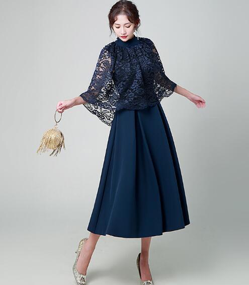 新作 お色選択可 ドレスライン ドレス パーティードレス 結婚式 二次会フォーマル お呼ばれ ワンピース ロングドレスレース 紺 XS-3XL