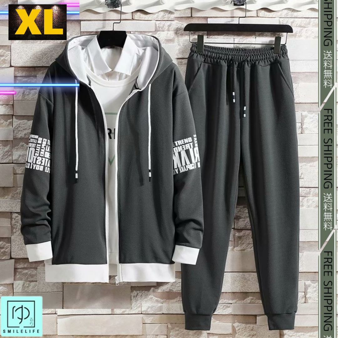 メンズ ストレッチセットアップ ジャージ 上下 ルームウェア パジャマ 部屋着 ウォーキング 散歩 スポーツ 速乾 グレー XL